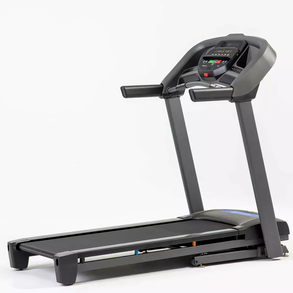 Kompaktowa bieżnia Horizon Fitness, pow biegowa 140×51 cm, silnik 2,5 KM, waga uzytkownika 126 kgs.