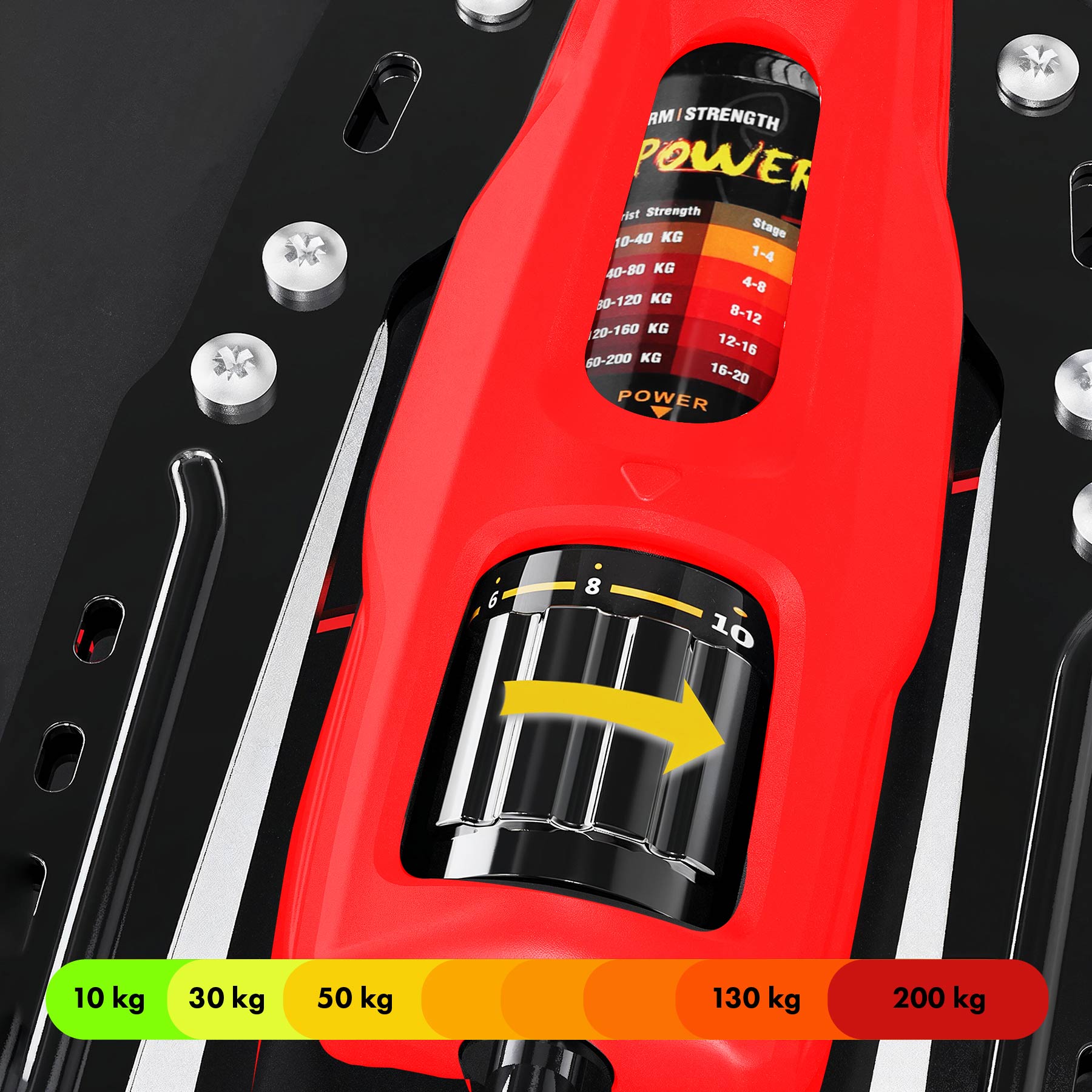 Szeroki zakres oporu 10–200 kg – dopasujesz trening od rozgrzewki po mocny wycisk.