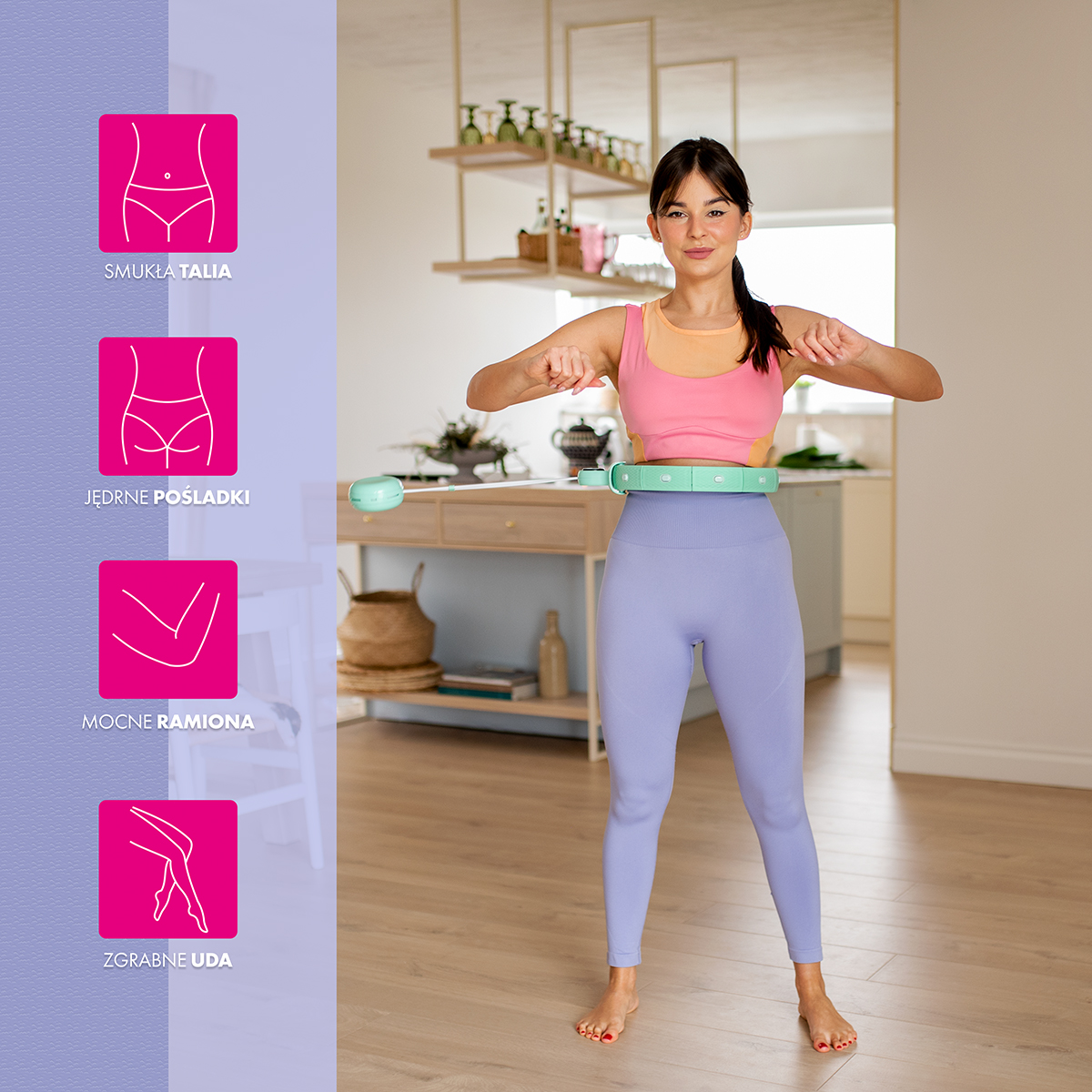 FH02 HMS to regulowany hula-hoop z absorbującymi drgania wypustkami i twardą piłką grawitacyjną do fitnessu. Pozwala na jednoczesny trening i masaż talii. Jest perfekcyjny m.in. do wzmocnienia mięśni core. Dzięki regulacji obwodu FH02 nigdy nie spadnie podczas ćwiczeń. dzięki czemu domowy trening cardio może być długi i przyjemny, co jest gwarancją jeszcze szybszych i lepszych efektów! Urządzenie dedykowane jest zarówno dla dzieci oraz dorosłych.