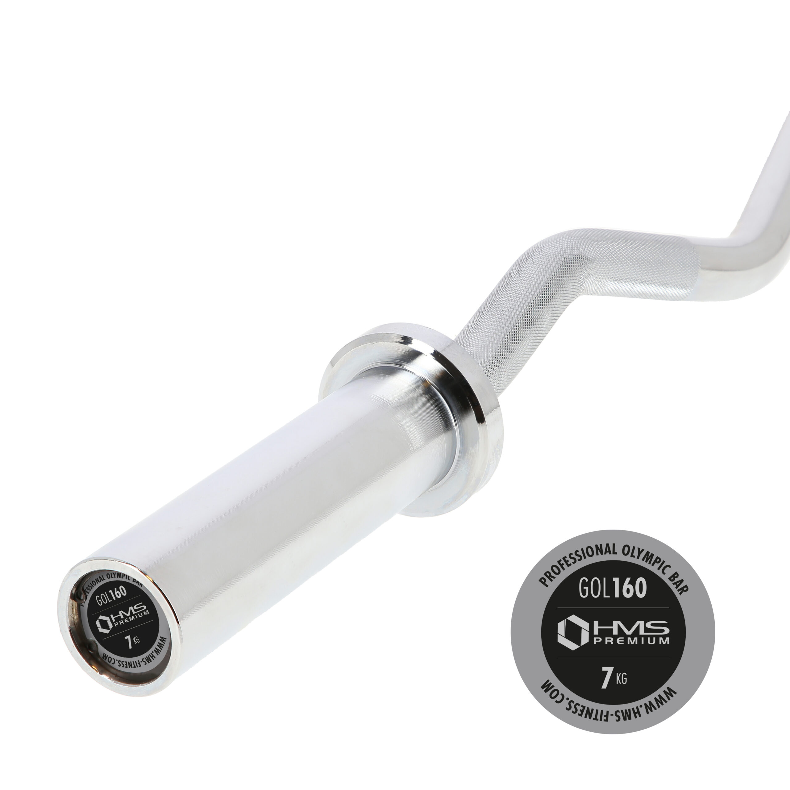 Gryf olimpijski łamany GOL160 HMS PREMIUM został wykonany ze specjalnej chromowanej stali, którą poddano procesowi hartowania. Produkt marki HMS cechuje wytrzymałość połączona z idealną elastycznością. W zestawie znajdują się dwa zaciski szczękowe.