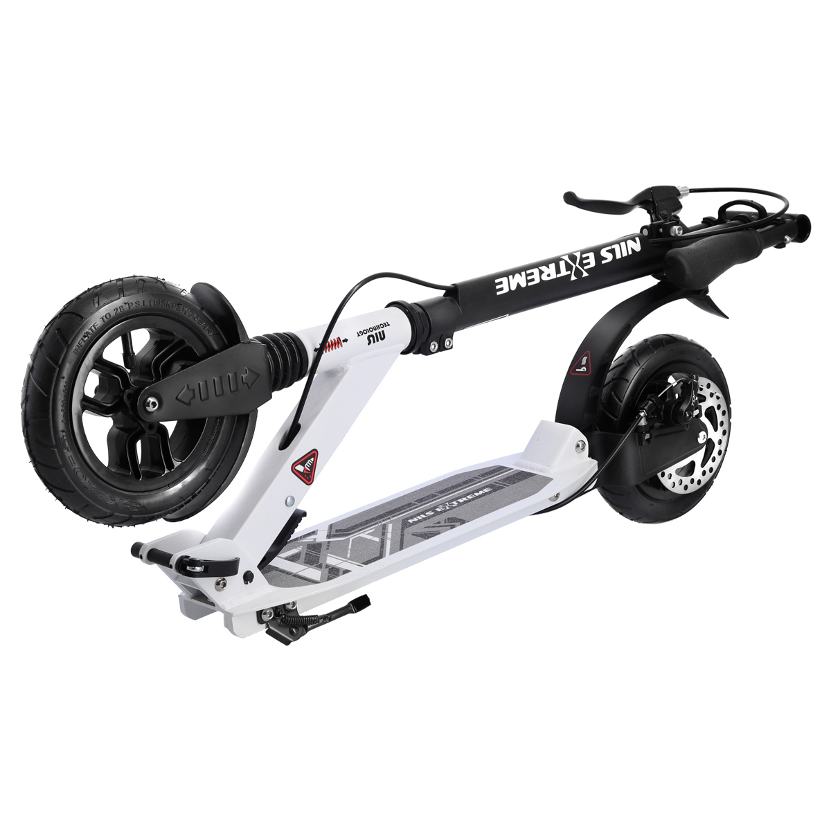 HM208T Nils Extreme to hulajnoga przeznaczona dla dzieci, młodzieży oraz dorosłych. Cechą charakterystyczną produktu marki Nils Extreme są dwa amortyzatory – przedni pionowy oraz tylny poziomy. Zapewniają one większy komfort podczas jazdy, minimalizują drgania oraz pochłaniają wstrząsy. Dzięki temu produkt bardzo dobrze sprawdzi się podczas przemieszczania się po nierównych powierzchniach.