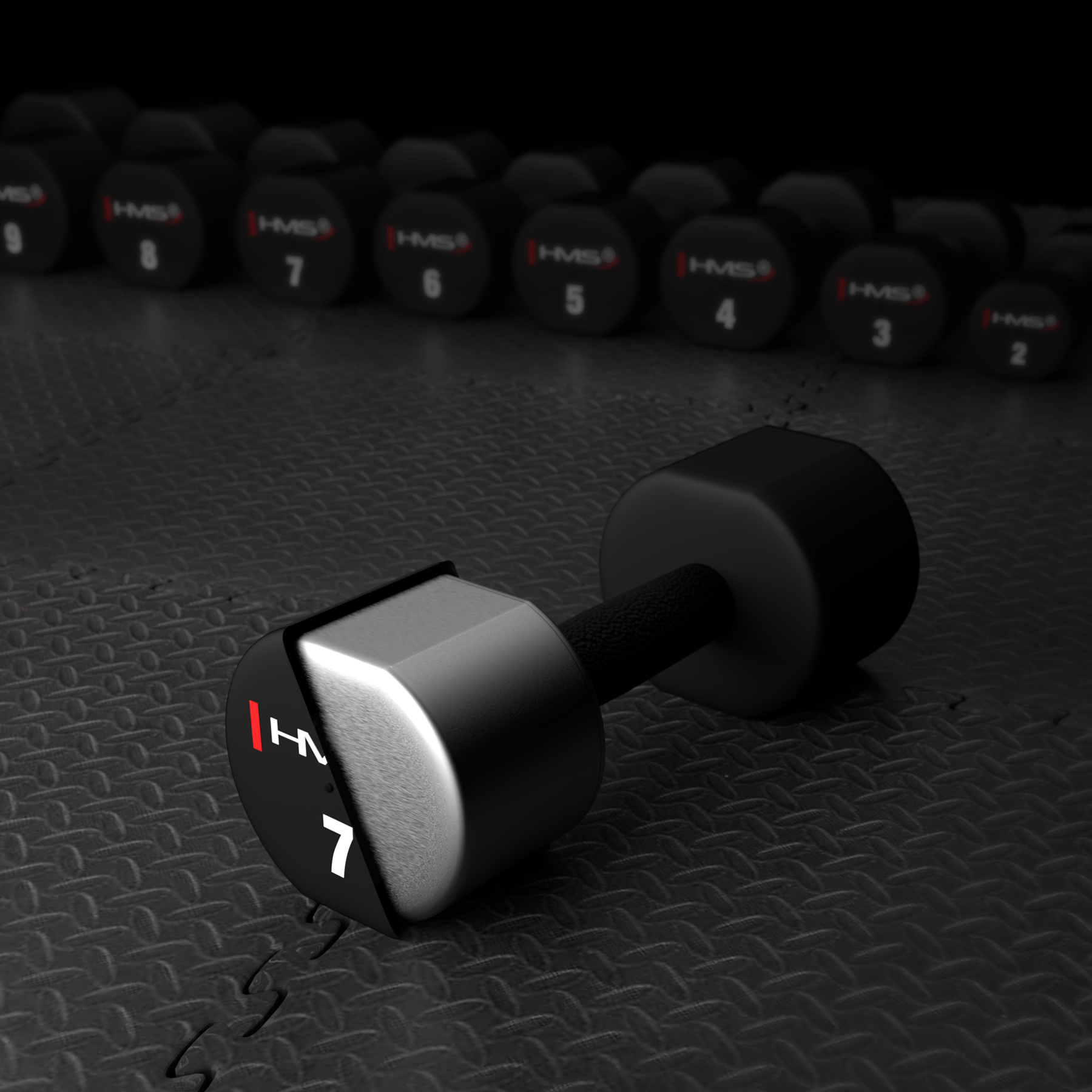 Hantle HPT od HMS są pokryte czarną warstwą termoplastycznego poliuretanu (TPU), materiału znanego z elastyczności przy zachowaniu wysokiego stopnia twardości. Dzięki temu są odporne na wstrząsy, zadrapania oraz uderzenia, co zapewnia długotrwałe użytkowanie bez utraty jakości. Poliuretanowa powłoka jest bezwonna oraz chroni podłoże przed uszkodzeniami, minimalizując ryzyko zarysowań czy hałasu podczas treningu.