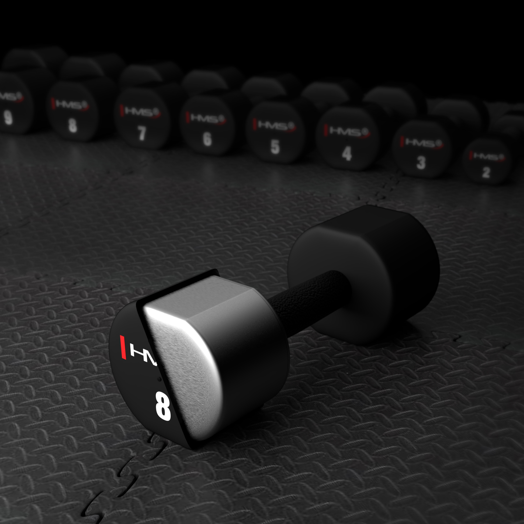 Hantle HPT od HMS są pokryte czarną warstwą termoplastycznego poliuretanu (TPU), materiału znanego z elastyczności przy zachowaniu wysokiego stopnia twardości. Dzięki temu są odporne na wstrząsy, zadrapania oraz uderzenia, co zapewnia długotrwałe użytkowanie bez utraty jakości. Poliuretanowa powłoka jest bezwonna oraz chroni podłoże przed uszkodzeniami, minimalizując ryzyko zarysowań czy hałasu podczas treningu.