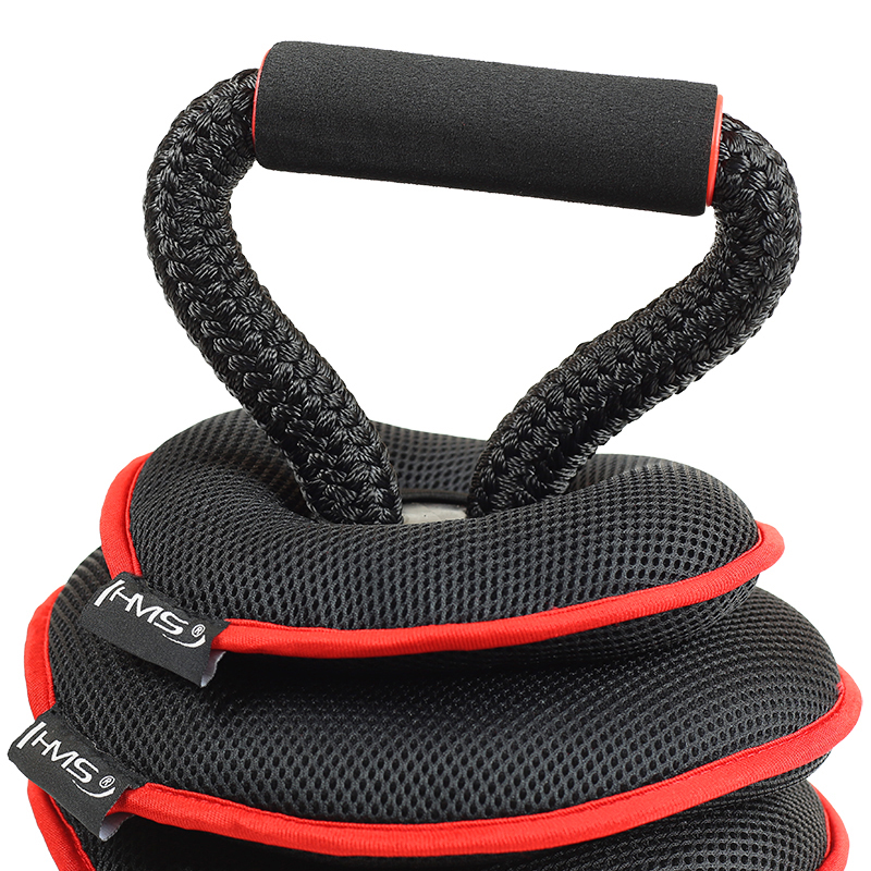 KRM20 HMS to regulowany kettlebell miękki. Jest to wyjątkowy przyrząd, który dzięki swej formie pozwala wykonać niemal wszystkie ćwiczenia zarezerwowane dla tradycyjnego kettlebella. Poprzez zastosowanie miękkich „talerzy”, wypełnionych piaskiem, daje możliwość szybkiej i łatwej zmiany obciążenia. To pozwala mu zastąpić kilka ciężarków, o różnej wadze. „Talerze” wykonane są z miękkiego materiału i pokryte siatką. Część główna kettlebella, na którą się je nakłada wykonana jest zaś z grubego, twardego plastiku. Cała Konstrukcja KRM20 i zastosowane w nim materiały zapewniają dużą wygodę i bezpieczeństwo ćwiczeń – trenując nie trzeba obawiać się stłuczeń i siniaków. Na długim i szerokim uchwycie, wykonanym z grubego sznura znajduje się twarda i wygodna rączka – pokryta miękkim, antypoślizgowym materiałem, który bardzo dobrze leży w dłoni i nie powoduje odcisków. Spód kettlebella jest płaski i niezależnie od ilości założonych talerzy pewnie stoi na ziemi. Trening z regulowany kettlebellem wzmacnia mięśnie, doskonale rozwija koordynację ruchową, zwiększając jednocześnie ogólną wydolność organizmu. Jego wielką zaletą, jest możliwość wykonywania tzw. ćwiczeń wielostawowych, aktywujących mięśnie, które są często pomijane podczas klasycznego treningu siłowego. Uwaga: wszystkie wartości obciążenia znajdujące się na produkcie podane są w funtach (lbs). 1 funt = 0,45 kg