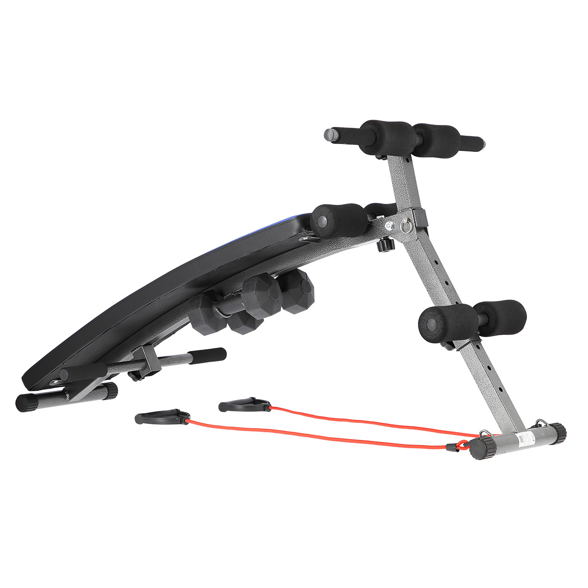 Przyrząd zapewnia duży wachlarz możliwości pracy, nad dolnymi oraz górnymi partiami ciała, a co za tym idzie urozmaica trening. Ławka została wyposażona, w dwa ciężarki o wadze 1,5 kg, które pokryto plastikiem. Ćwiczenia górnych partii ciała, wspomagają również specjalne gumowe linki.
