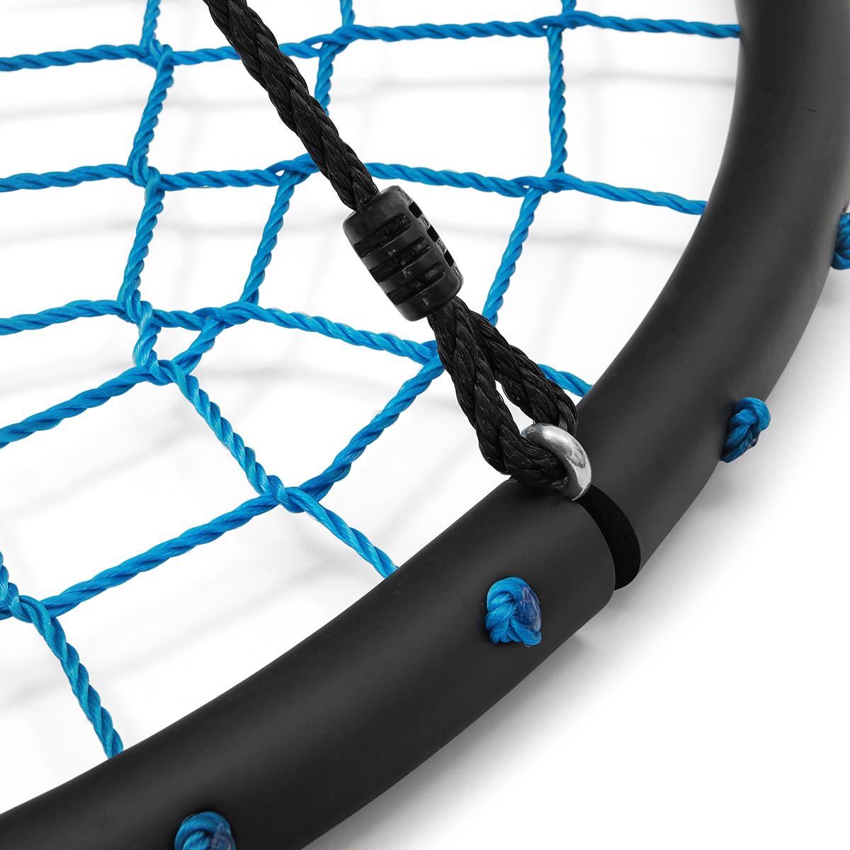 Siedzisko, to pajęczyna z lin która daje mnóstwo możliwości do zabawy a przy tym jest wygodna. Dzięki temu, zabawa może trwać długie godziny. Zarówno liny mocujące jak i te na siedzisku, wykonane są z bardzo wytrzymałego polietylenu. Rama, została zabezpieczona specjalną pianką. Wszystko dla zmaksymalizowania bezpieczeństwa. Dodatkowo, materiały z jakich huśtawka została wykonana, są odporne na niekorzystne warunki atmosferyczne, takie jak deszcz czy śnieg. Dzięki temu, nie ma konieczności chowania sprzętu, jak tylko zacznie padać.