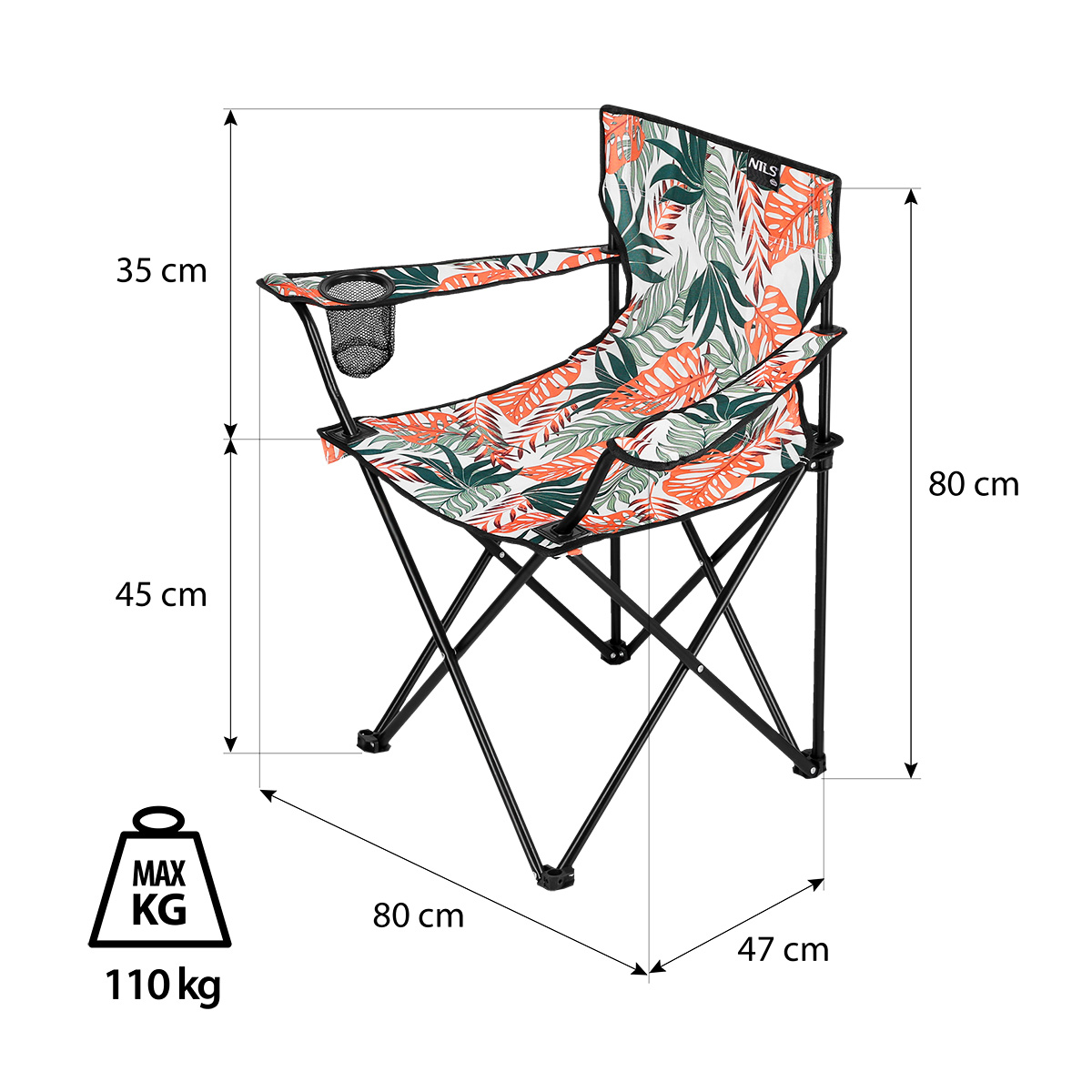To uniwersalne krzesło, które sprawdzi się w każdych warunkach i w każdym terenie. Za jego stabilność odpowiadają stalowe solidne profile o średnicy 16 mm. Dzięki mocnej konstrukcji oraz materiałowi 600D poliester, który jest bardzo wytrzymały dopuszczalne obciążenie krzesła to aż 110 kg. Uzupełnieniem są antypoślizgowe nóżki zabezpieczające przed przesuwaniem się krzesła.
