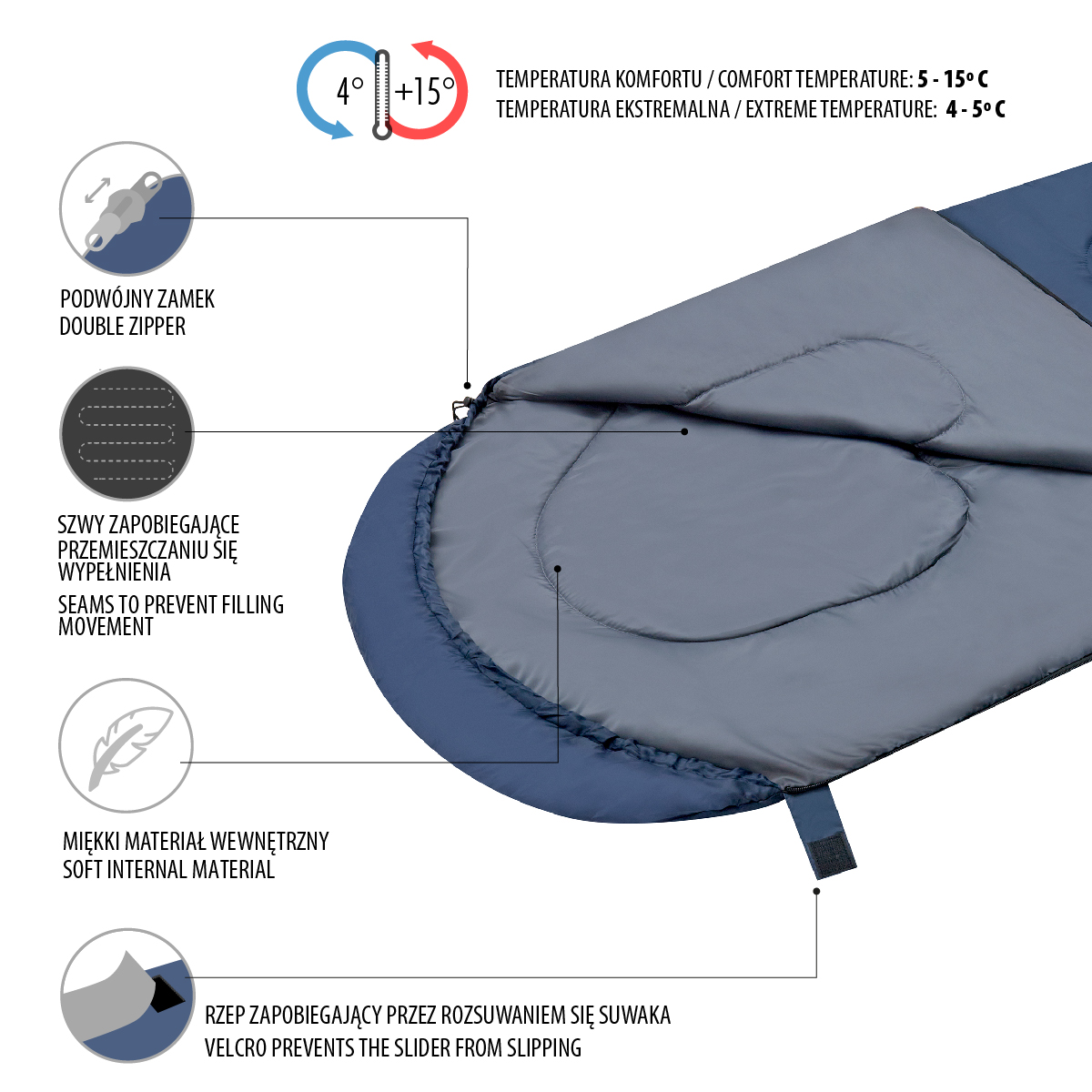 Temperatura komfortu: 5 – 15°C