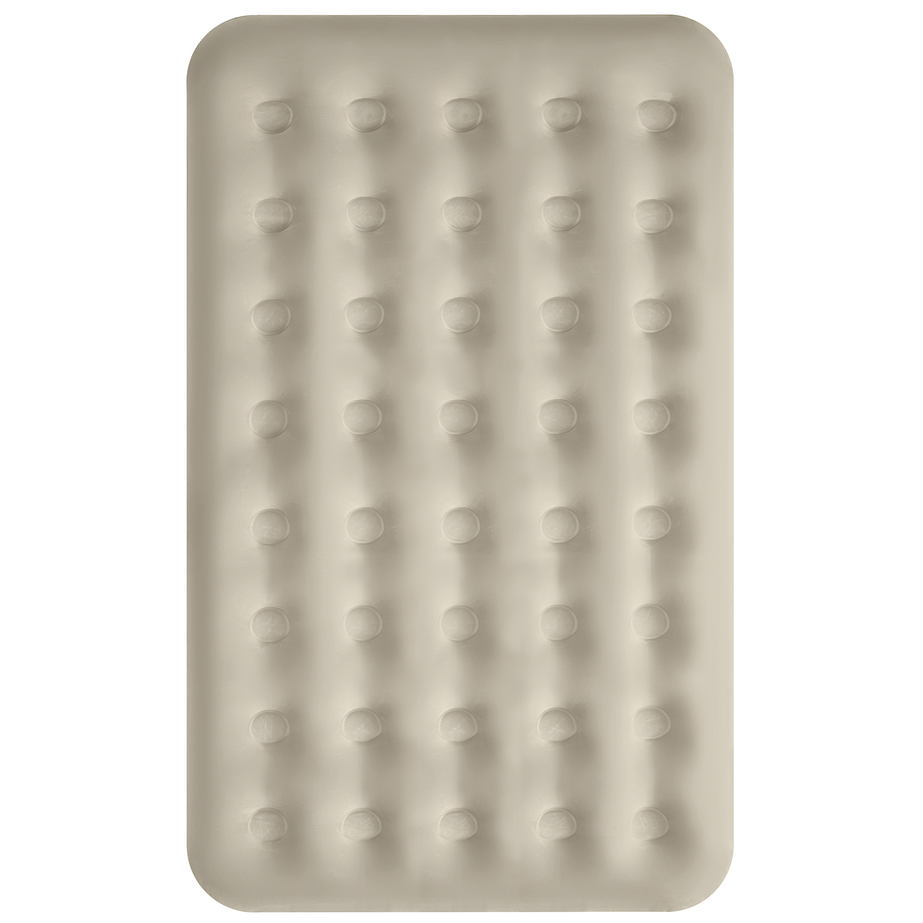 Materac wykonano z wysokiej jakości tworzywa PVC, które jest odporne na przetarcia, uszkodzenia mechaniczne i warunki atmosferyczne. Gładka, łatwa w czyszczeniu powierzchnia pozwala utrzymać go w czystości, nawet po intensywnym użytkowaniu na zewnątrz. Struktura materiału zapewnia nie tylko trwałość, ale również elastyczność, dzięki czemu materac dopasowuje się do kształtu ciała, wspierając odpowiednie ułożenie kręgosłupa podczas snu.