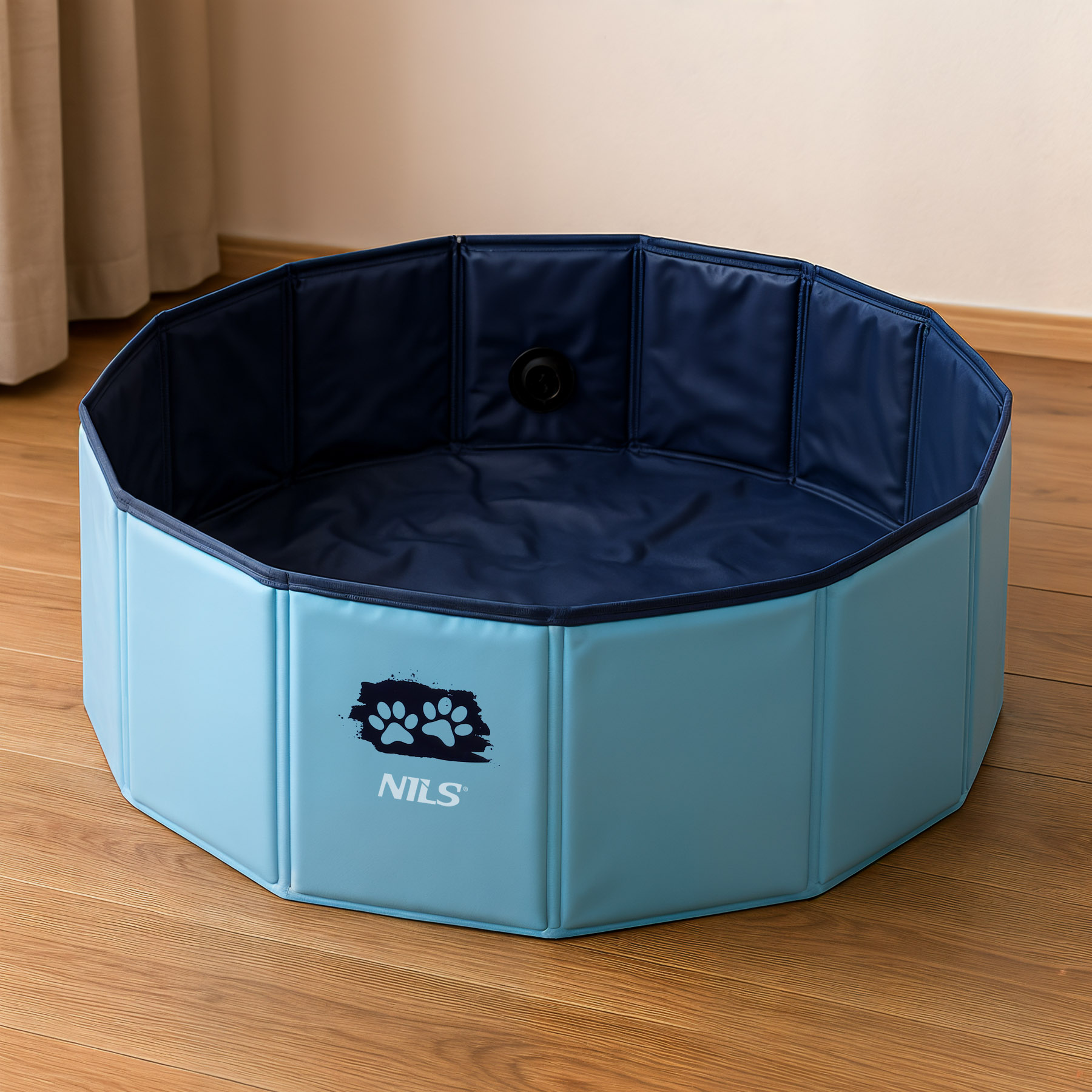 Basen wykonany został z trwałego materiału PVC, który charakteryzuje się odpornością na uszkodzenia mechaniczne oraz łatwością w czyszczeniu. Wewnątrz ścianek znajduje się wzmocnienie z płyty MDF, które zapewnia odpowiednią sztywność i stabilność konstrukcji – nawet przy intensywnym użytkowaniu przez energicznego pupila. Ścianki są elastyczne, ale jednocześnie stabilne, co zmniejsza ryzyko przypadkowego wywrócenia zbiornika.