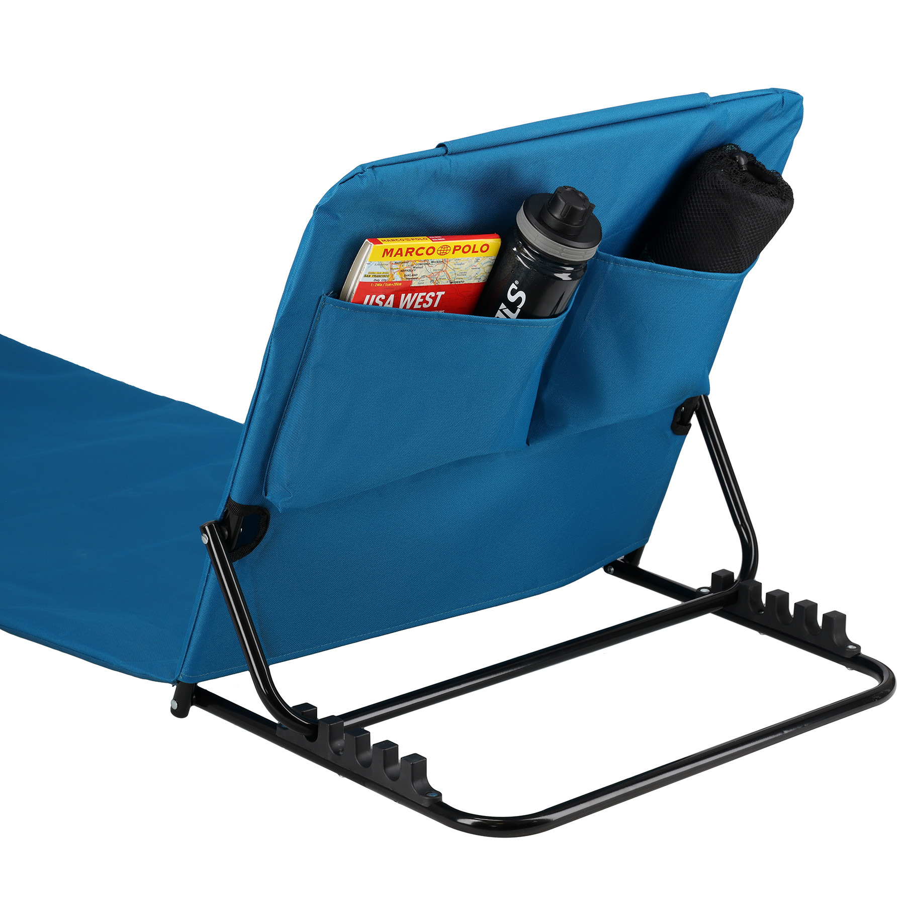 Z tyłu oparcia znajduje się praktyczne kieszenie, idealne do przechowywania drobnych przedmiotów, takich jak telefon, okulary przeciwsłoneczne czy książka. Dzięki temu wszystko, co niezbędne, masz zawsze pod ręką. W zestawie znajduje się również poręczna torba transportowa, która ułatwia przenoszenie maty oraz chroni ją podczas przechowywania.