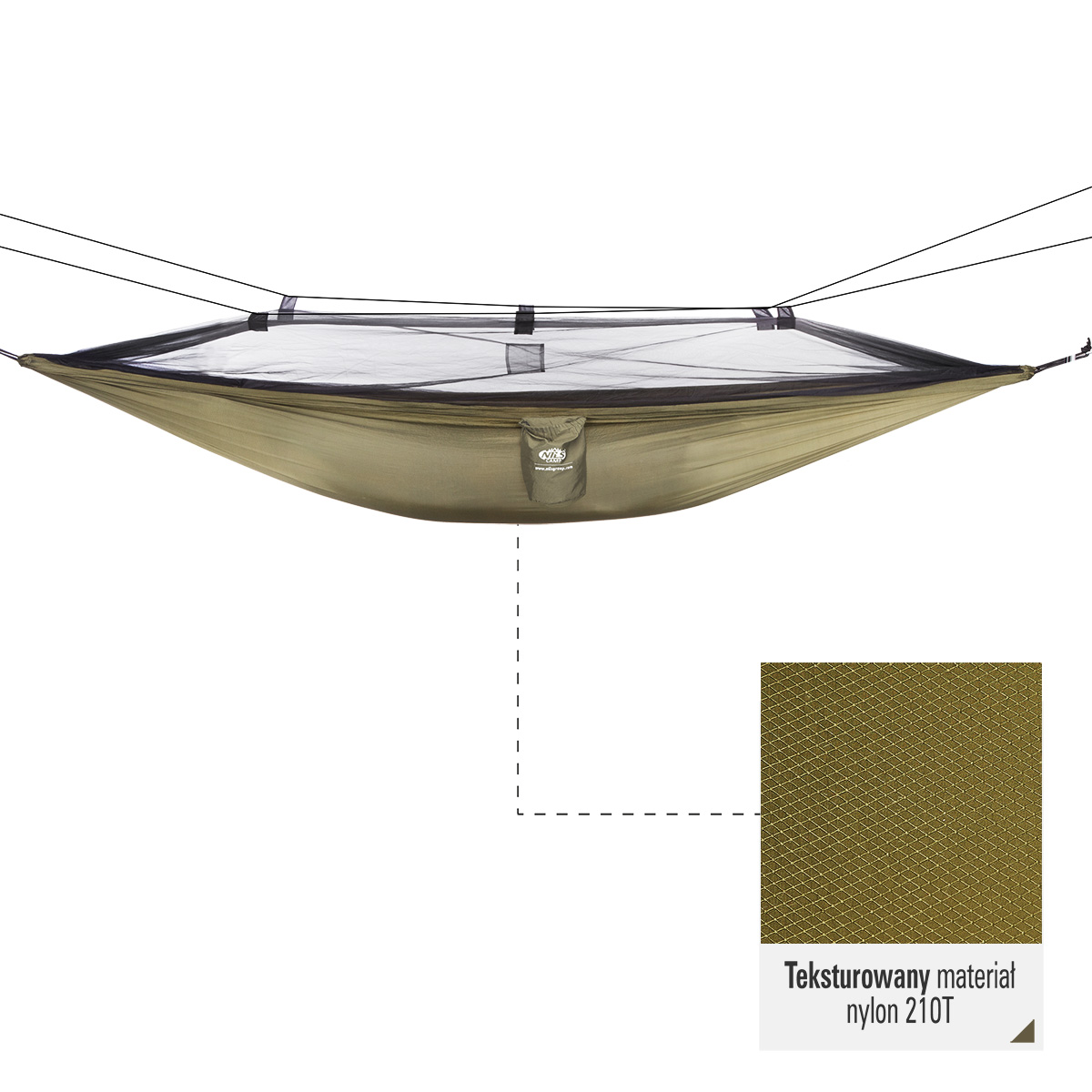 Niewątpliwie największą zaletą NC3116 jest wbudowana moskitiera na suwak, która będzie skuteczną barierą przed owadami, co jest gwarancją komfortowego i spokojnego snu. Moskitiera jest połączona z dwiema linkami, co powoduje że materiał jest naciągnięty i cała konstrukcja nie opadnie na użytkownika.