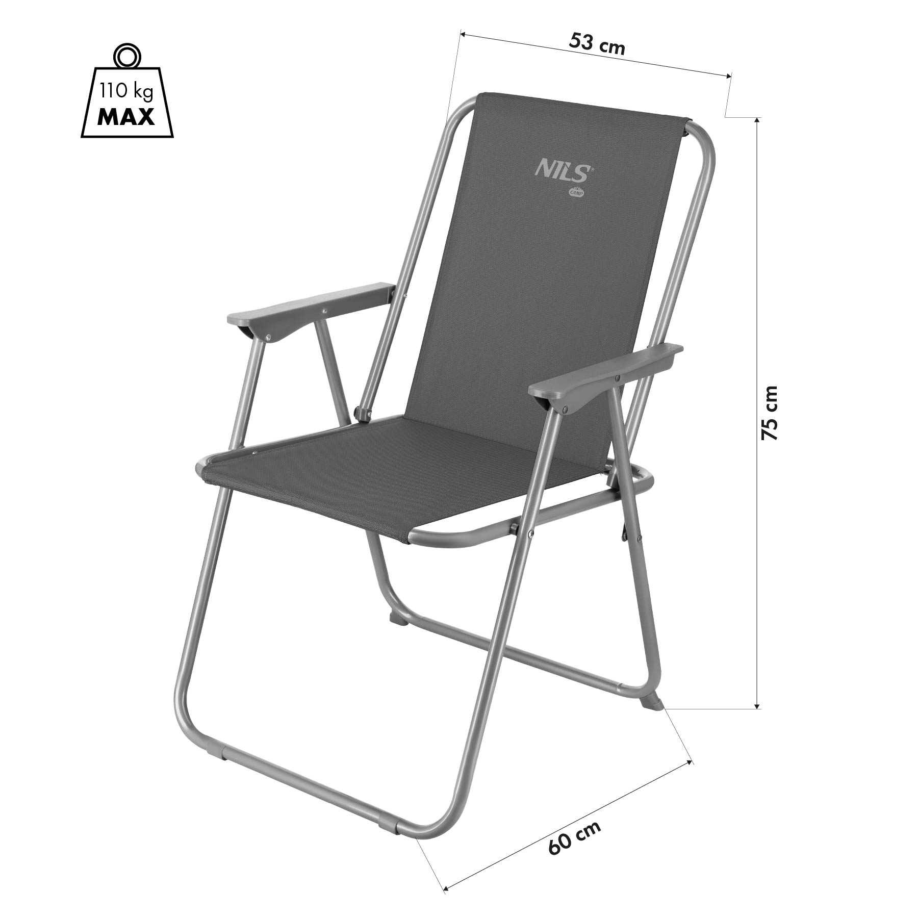 NC3503 KRZESŁO KEMPINGOWE SKŁADANE SZARE NILS CAMP