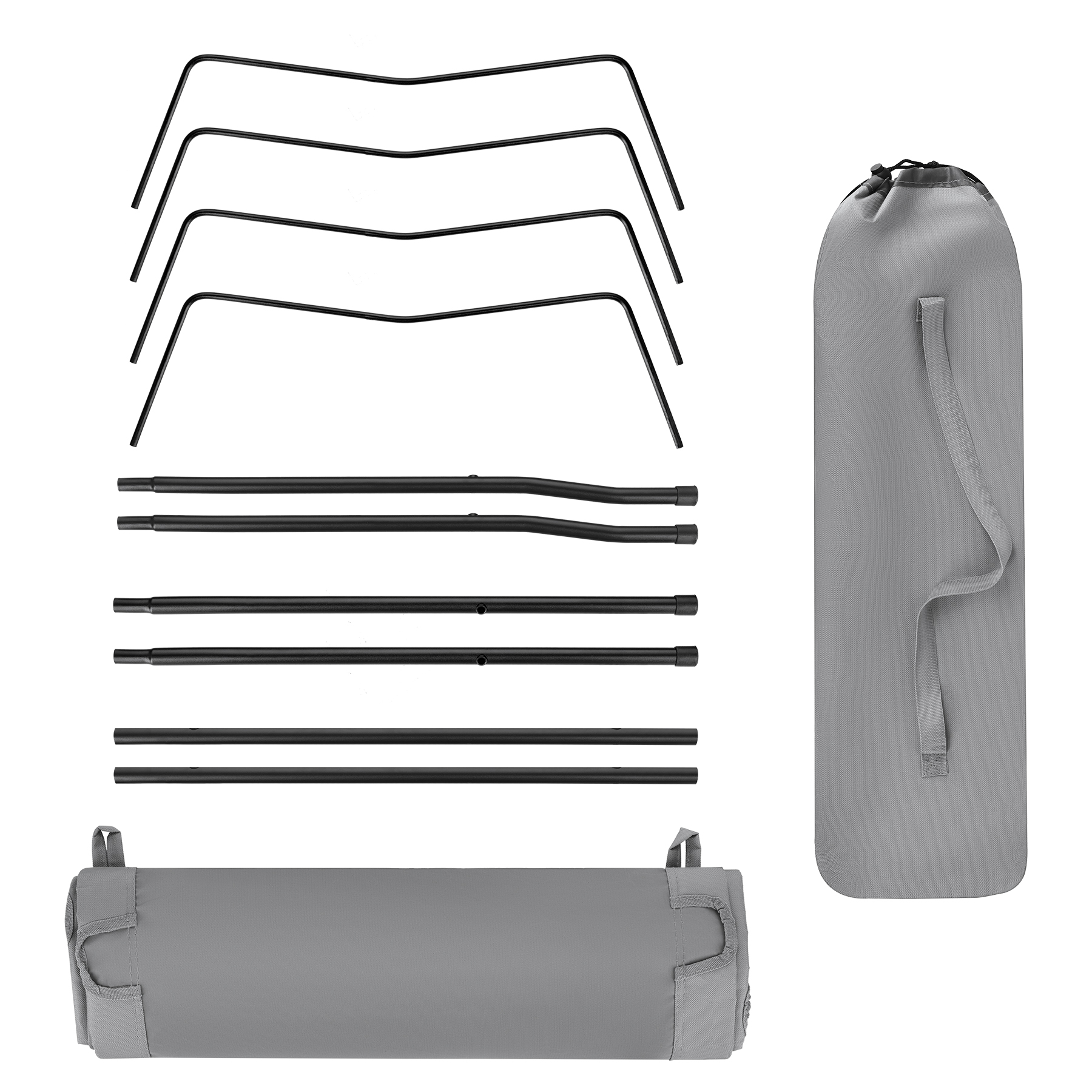Powierzchnia łóżka wykonana została z wytrzymałej tkaniny 600D Oxford, znanej z odporności na przetarcia, rozciąganie oraz wilgoć. Materiał ten gwarantuje nie tylko trwałość, ale również wygodę – jest odpowiednio napięty i przewiewny, co sprawia, że użytkownik czuje się komfortowo nawet podczas ciepłych, letnich nocy.