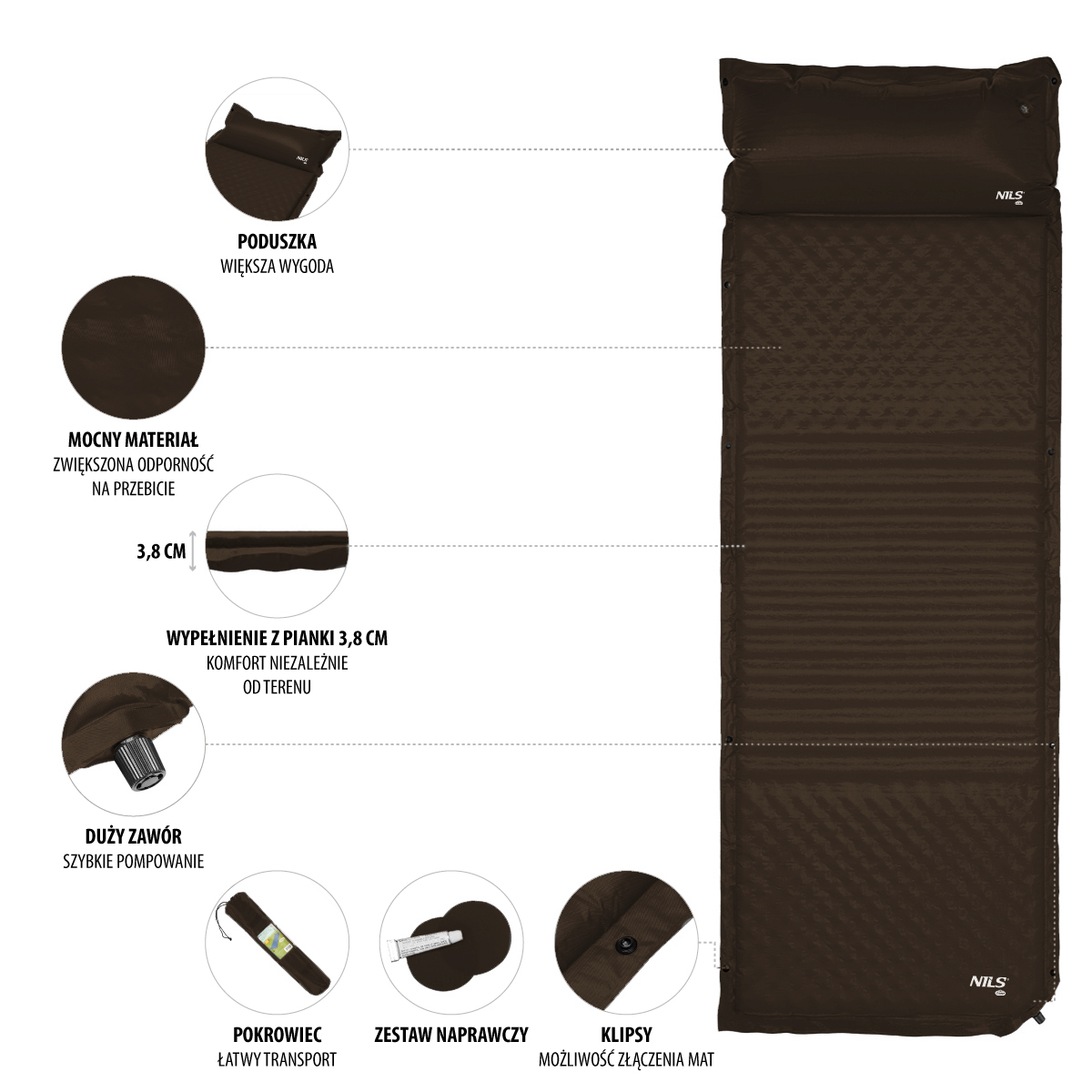 Mata samopompująca z poduszką NC4001 to świetne rozwiązanie dla każdego miłośnika spędzania czasu podczas campingu, pod namiotem czy na plaży!