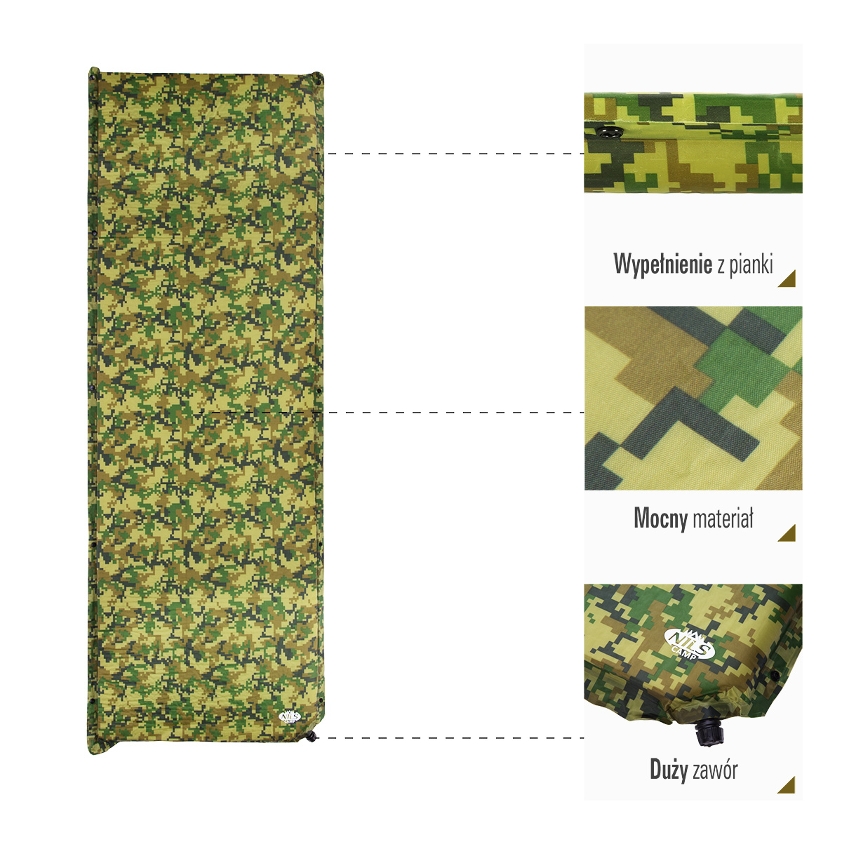 Plażowanie, camping czy też spanie na świeżym powietrzu, pod namiotem to z pewnością ulubione atrakcje, wielu z nas. Jednak dla naszej wygody, potrzebny jest dobry sprzęt. Oryginalne maty samopompujące marki NILS CAMP, zagwarantują komfort użytkowania, niezależnie od warunków, w jakich się znajdziemy. Przedstawiamy model NC4050.