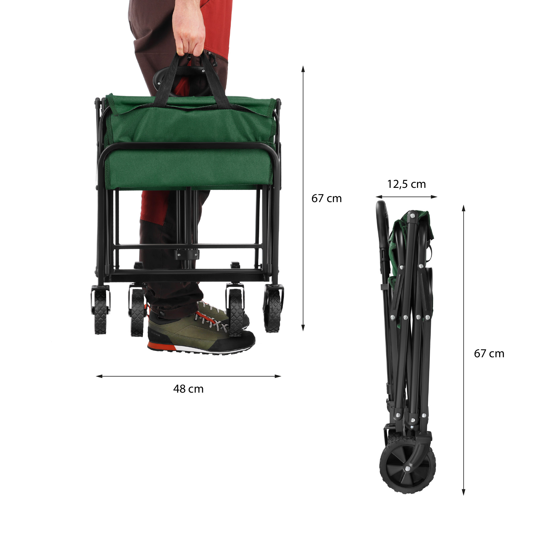 Na tym jednak jego możliwości się nie kończą. To uniwersalne rozwiązanie na turystyczne wyjazdy i kemping – świetnie sprawdza się przy przenoszeniu bagażu między autem a namiotem, przewożeniu prowiantu, sprzętu biwakowego czy akcesoriów dla dzieci. Będzie też praktycznym wsparciem podczas pikników, wypadów na działkę oraz w ogrodzie, gdzie ułatwia transport narzędzi, doniczek, ziemi czy zebranych rzeczy bez ciągłego wracania po kolejne elementy.