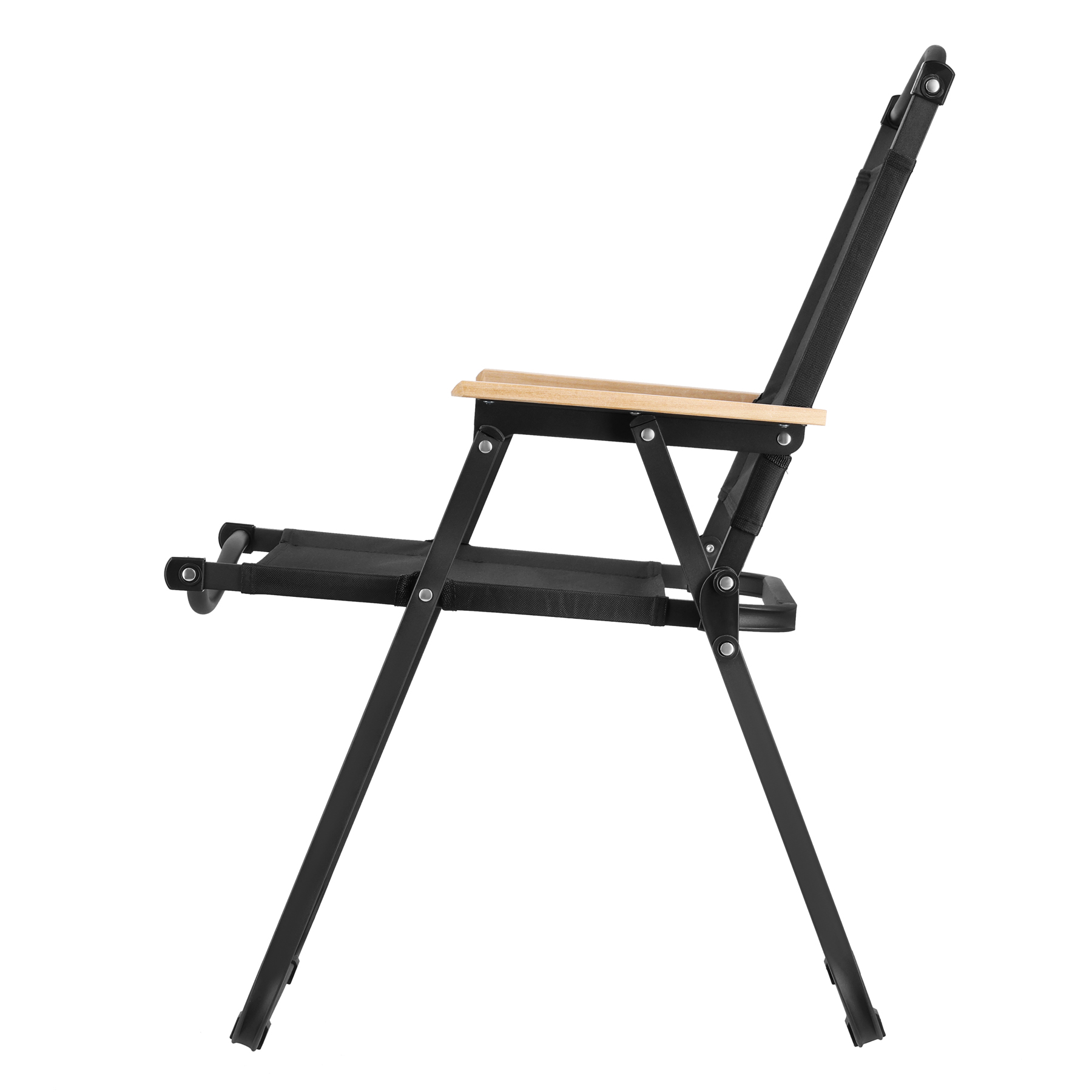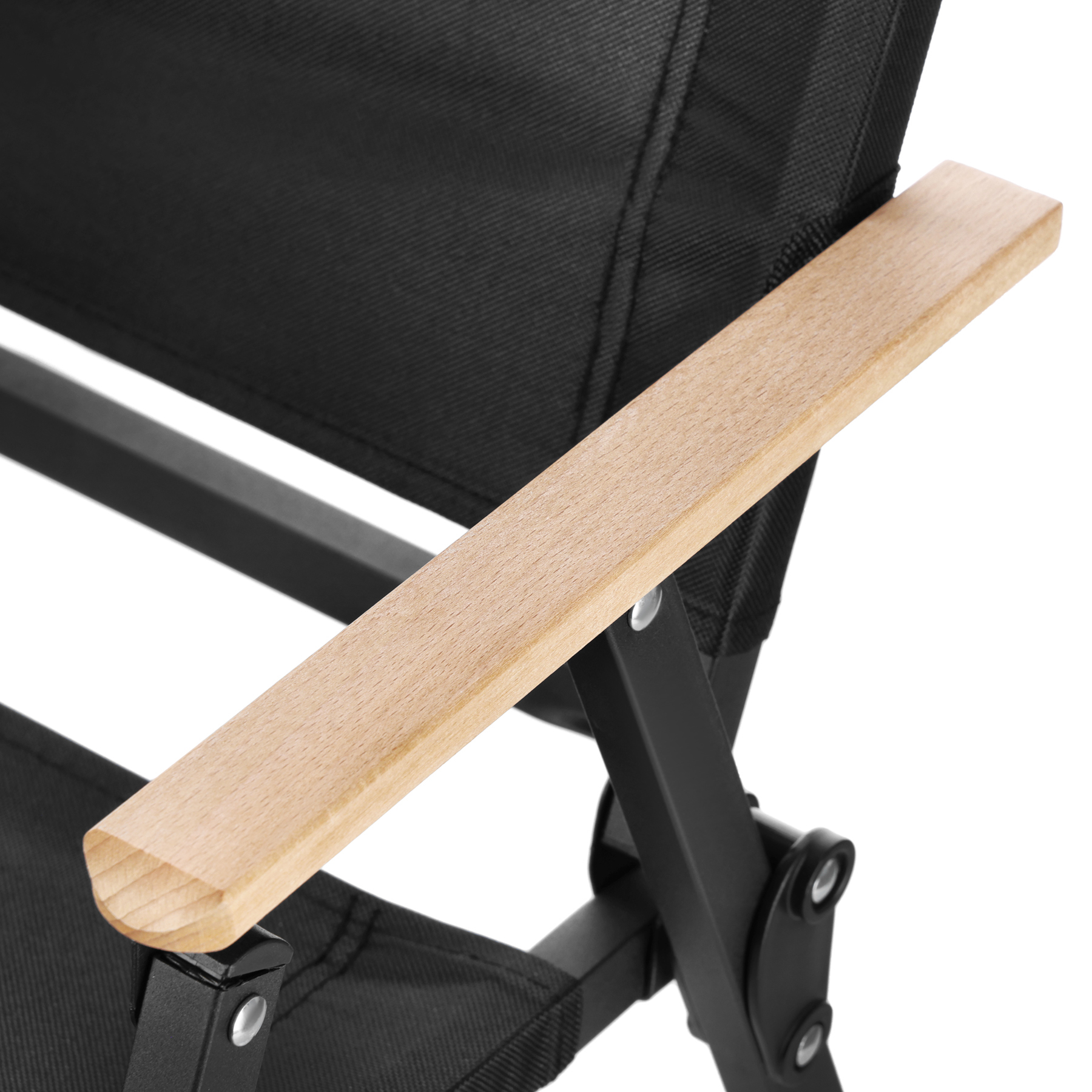 Drewniane elementy wykończenia dodają całości stylu i sprawiają, że krzesło prezentuje się estetycznie zarówno w ogrodzie, jak i w strefach glampingowych. Konstrukcję oparto na solidnym stelażu z żelaza, a jego powierzchnia została zabezpieczona poprzez malowanie proszkowe. Taka powłoka zwiększa odporność na codzienne użytkowanie i pomaga zachować estetyczny wygląd przez dłuższy czas, co podkreśla wysoką jakość wykonania. Siedzisko wykonano z wytrzymałego materiału 900D. Materiał o grubszym splocie jest znany z bardzo dobrej odporności na ścieranie oraz rozdarcia, dzięki czemu krzesło dobrze sprawdza się w warunkach plenerowych i przy częstym składaniu oraz rozstawianiu.