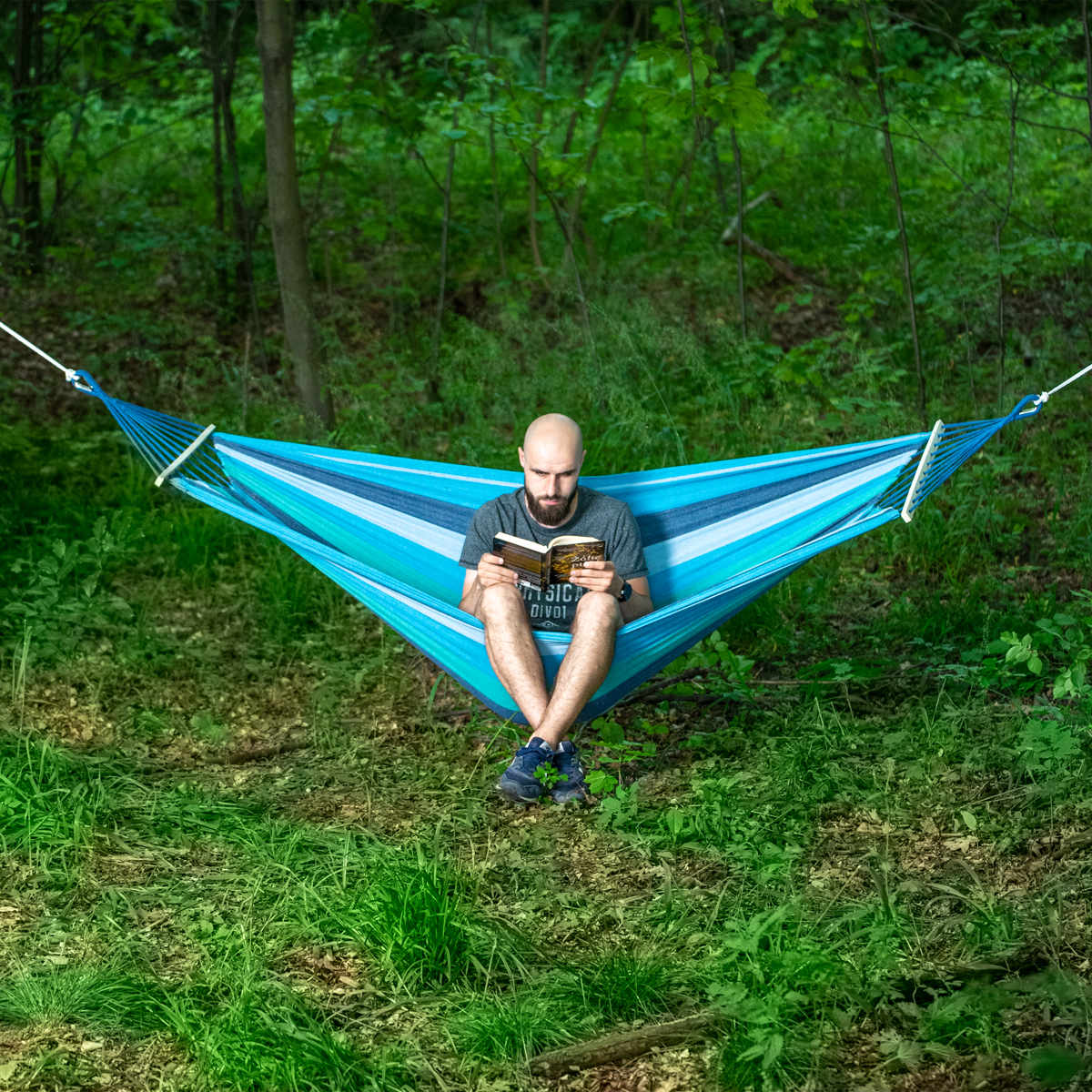 By nic nie zakłócało naszego odpoczynku, należy też zadbać o bezpieczeństwo użytkowania. Wytrzymałe, grubo plecione liny, o średnicy 6 mm oraz wzmocnienie w postaci metalowego uchwytu, skutkują dopuszczalnym obciążeniem 150 kg i pozwolą cieszyć się czasem wolnym, bez obaw o jakikolwiek wypadek.