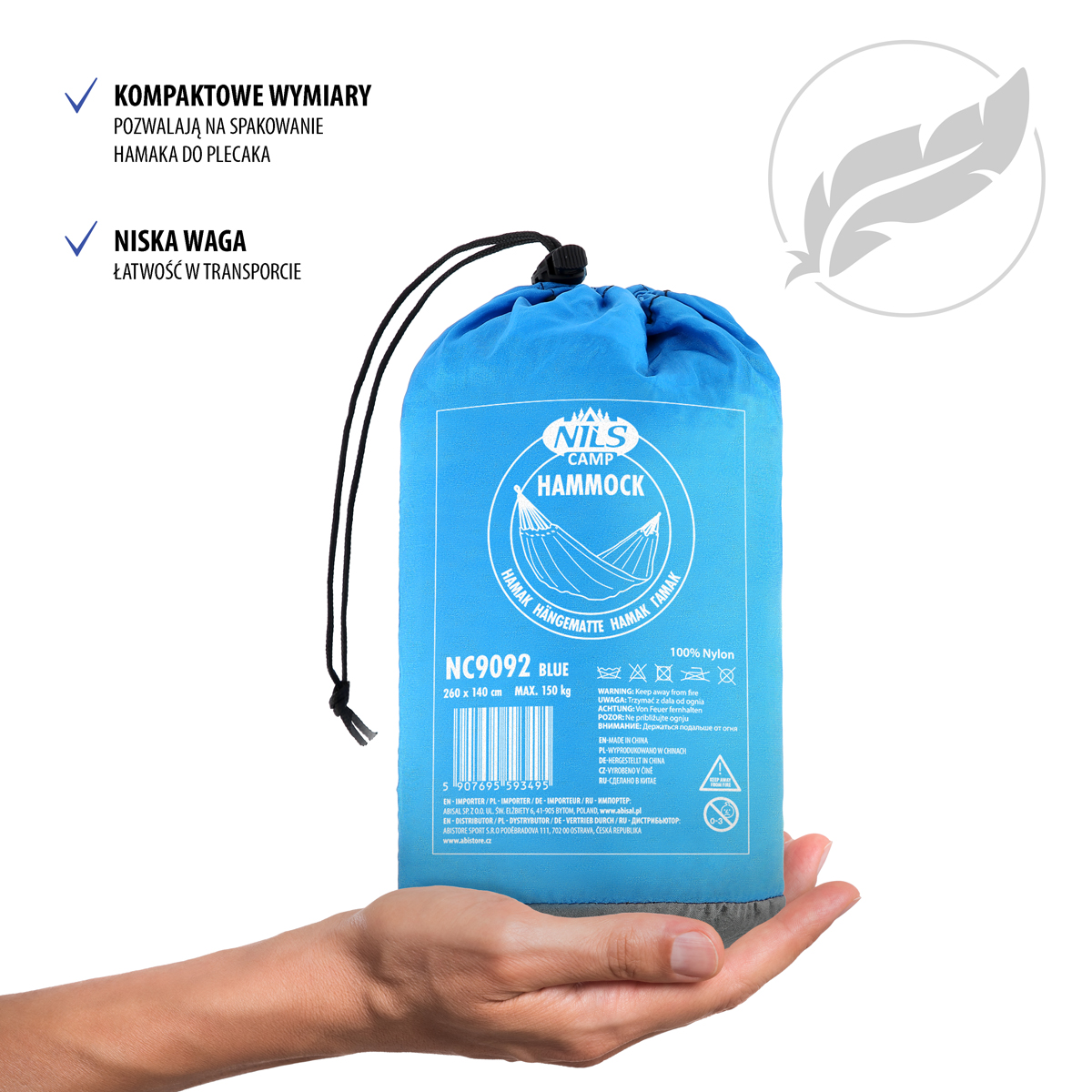 To hamak nastawiony na turystykę, ale sprawdzi się również w ogrodzie. Jest przeznaczony do zawieszenia np. między dwoma drzewami. Łatwy w montażu, wszystkie niezbędne przybory, znajdują się w zestawie. Już po kilku chwilach, będziemy mogli oddać się, błogiemu odpoczynkowi. Jedną z głównych zalet modelu NC9092, jest jego kompaktowość. Mieści się w niewielkim pokrowcu, który jest przyszyty na stałe, do zewnętrznej części hamaka. Bez najmniejszego problemu, umieścimy go w torbie, plecaku czy nawet damskiej torebce. Zwłaszcza, że za małymi rozmiarami po złożeniu, idzie także niska waga, która wynosi minimalnie ponad 0,5 kg. Te czynniki sprawiają, że od teraz hamak może być towarzyszem każdej wyprawy czy pieszej wycieczki. Niewielkie rozmiary po złożeniu, nie oznaczają małych rozmiarów użytkowych. Hamak ma aż 140 cm szerokości, idealnie dopasowuje się do ciała i gwarantuje każdemu, znalezienie wygodnej pozycji.