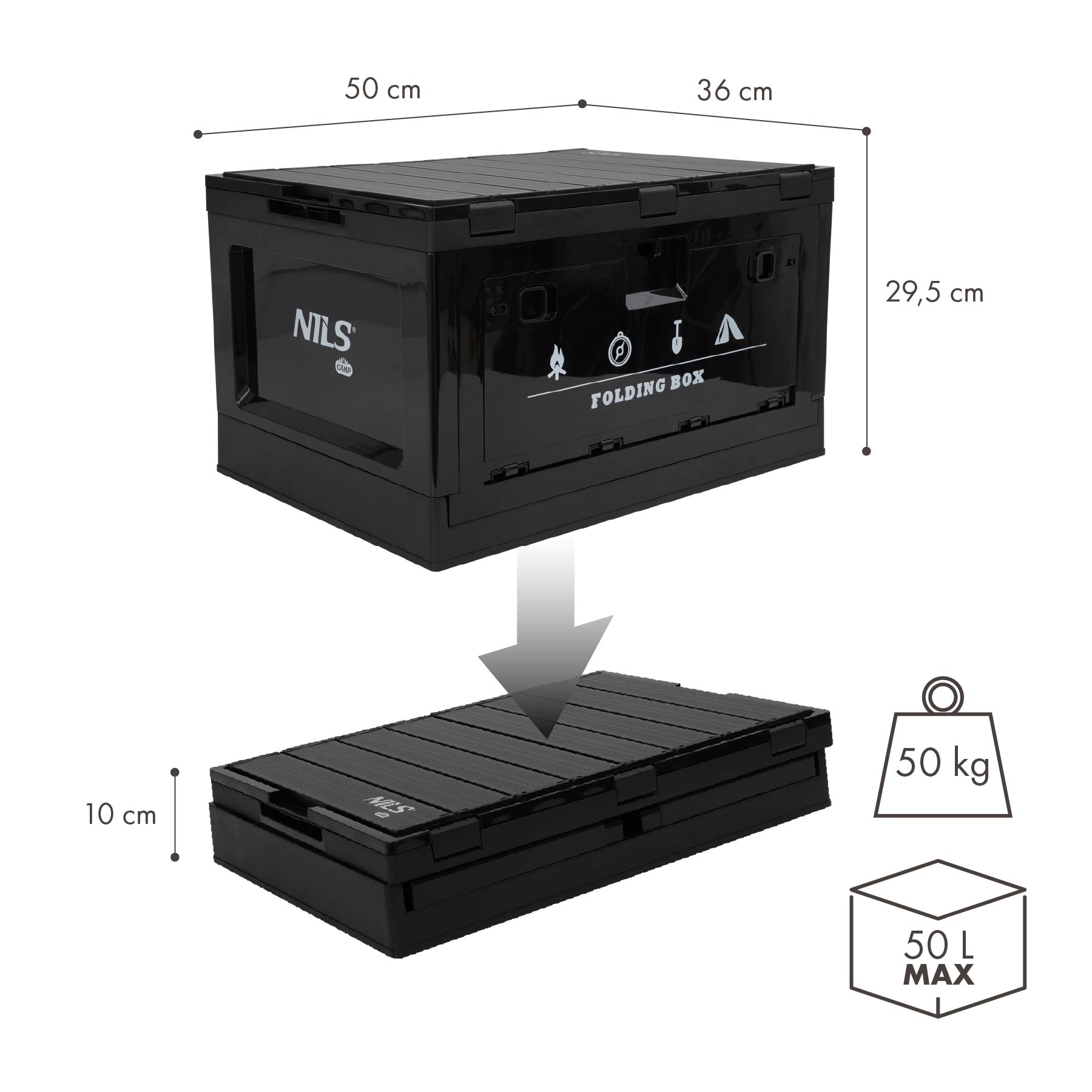 Wymiary po rozłożeniu: 50 x 36 x 29,5 cm