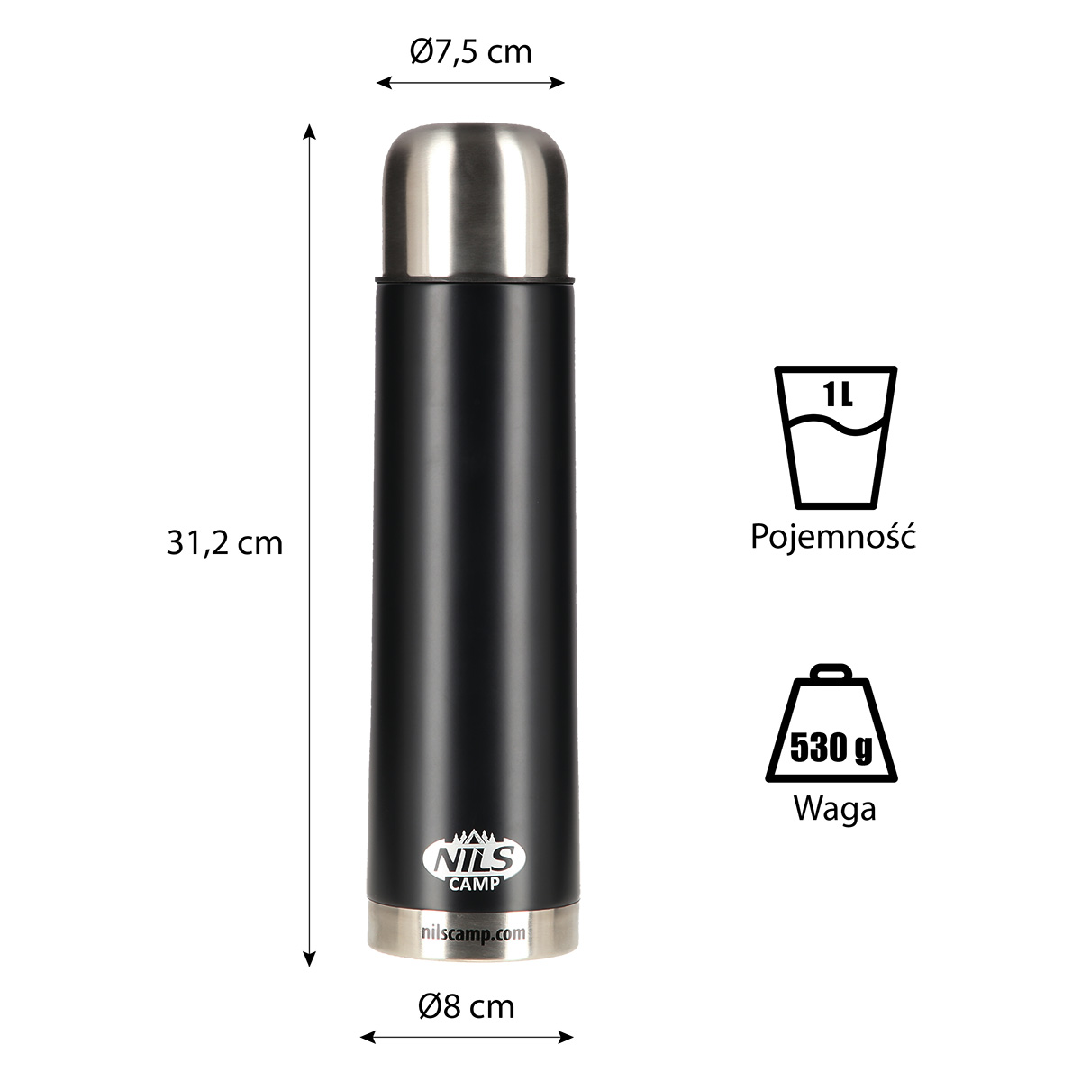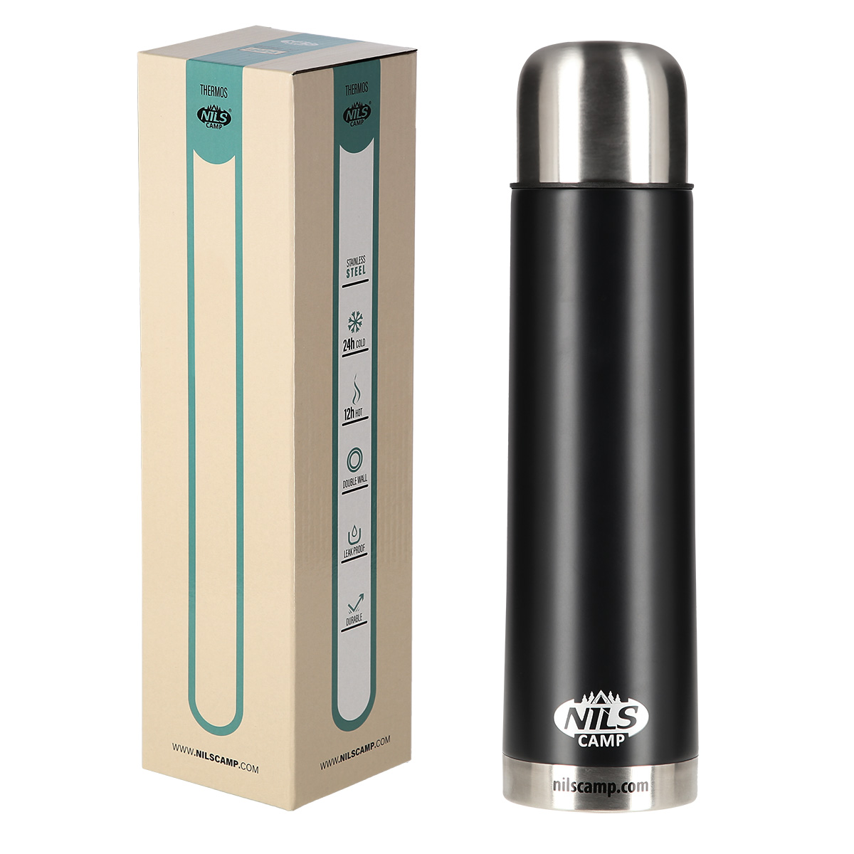 Termos NCC07 marki Nils Camp cechuje zarówno prosta konstrukcja jak i opływowy design! NCC07 to termos, który wykonany jest ze stali nierdzewnej o podwójnej ściance, dzięki czemu gwarantuje utrzymanie temperatury ciepłych napoi przez 12 godzin, a zimnych przez 24 godziny. Termos NCC07 posiada bardzo wygodny system otwierania. Wystarczy wcisnąć przycisk otwierania i gotowe. Dzięki zakrętce, która pełni funkcję kubka termos przyda nam się zarówno w pracy, w domu jak i na wycieczce.
