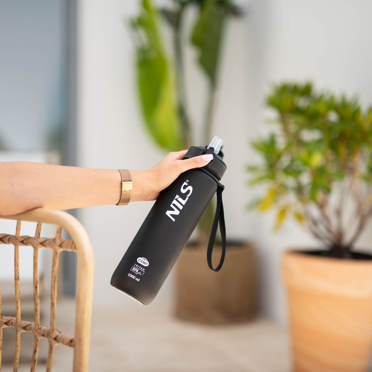 Butelka tritanowa NCD68 marki Nils CAMP cechuje niezwykłe połączenie trwałości, ergonomii kształtu i funkcjonalności. Tritanowa butelka została zaprojektowana tak, aby mogła nam towarzyszyć przez cały dzień. Dzięki znajdującej się na tylnej ścianie butelki przedziałce możemy monitorować na bieżąco poziom naszego nawodnienia. Butelka posiada szczelny gumowy ustnik połączony ze słomką oraz innowacyjny system otwierania. Aby móc się napić, należy przesunąć zawleczkę w dół i wcisnąć przycisk – wtedy blokada otworu się zwalnia. Natomiast, żeby zablokować otwór, wystarczy przesunąć z powrotem zawleczkę ku górze. NCD68 posiada również dodatkowy uchwyt w postaci paska na nadgarstek, który jest przydatny podczas transportu. Całość prezentuje się niezwykle praktycznie i oryginalnie.