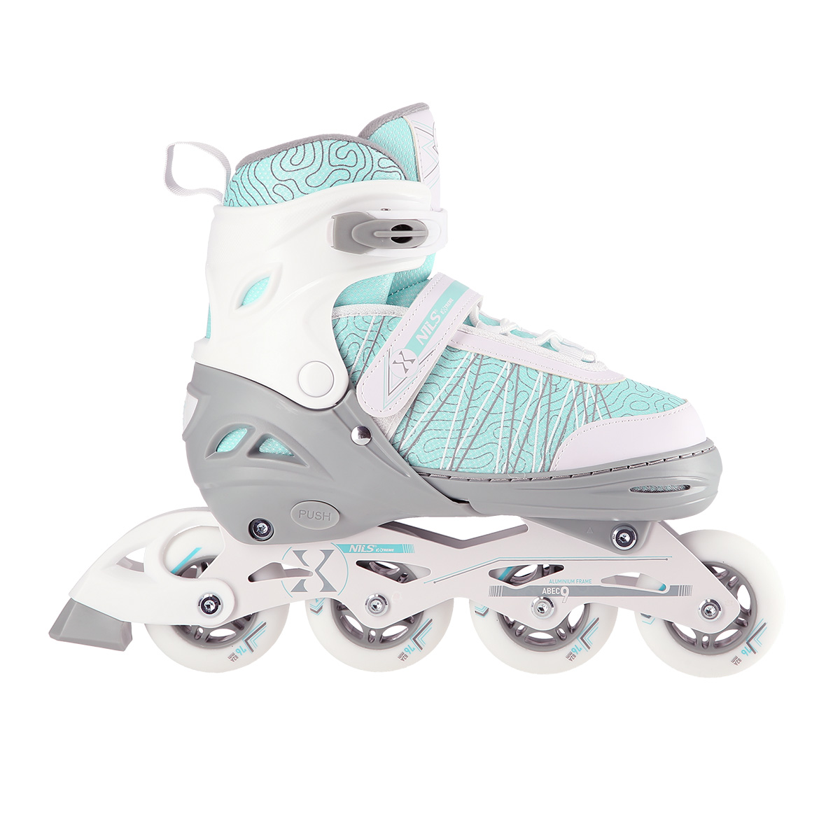 Łyżworolki NH11912 to czysta radość z jazdy. Łyżworolka wyposażona jest w specjalną aluminiową płozę oraz hamulec co zapewnia bezpieczeństwo podczas jazdy. Z kolei kółka oraz łożyska klasy ABEC9 pozwalają na mniejsze opory toczenia, czyli szybszą jazdę.