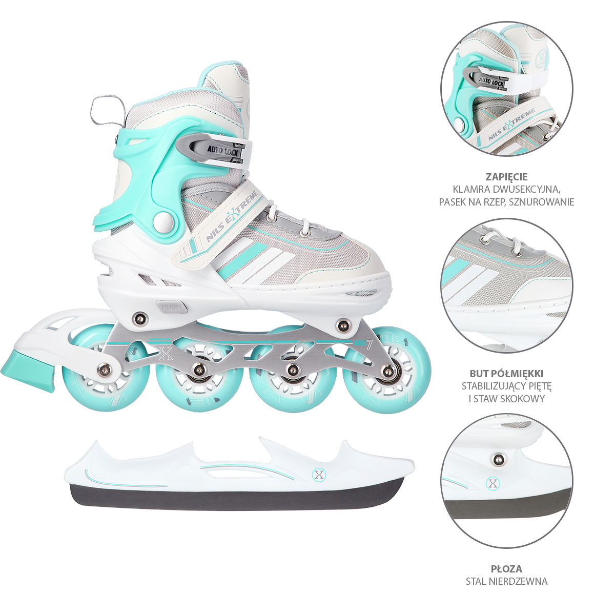 NH18191 Nils Extreme, to produkt przeznaczony dla pasjonatów jazdy. Oferuje 2 możliwości konfiguracji. Są to: łyżwy, łyżworolki.
