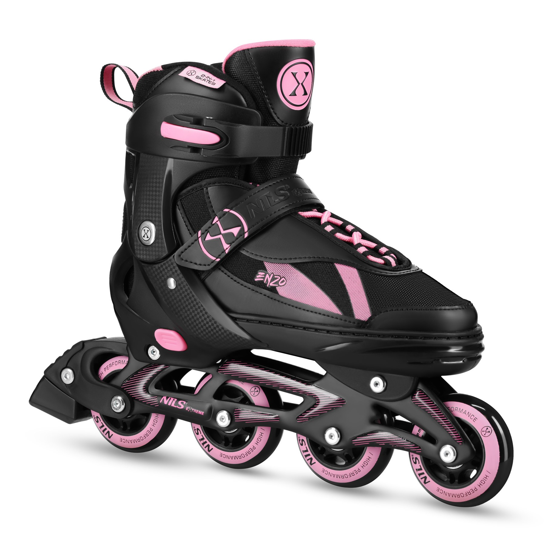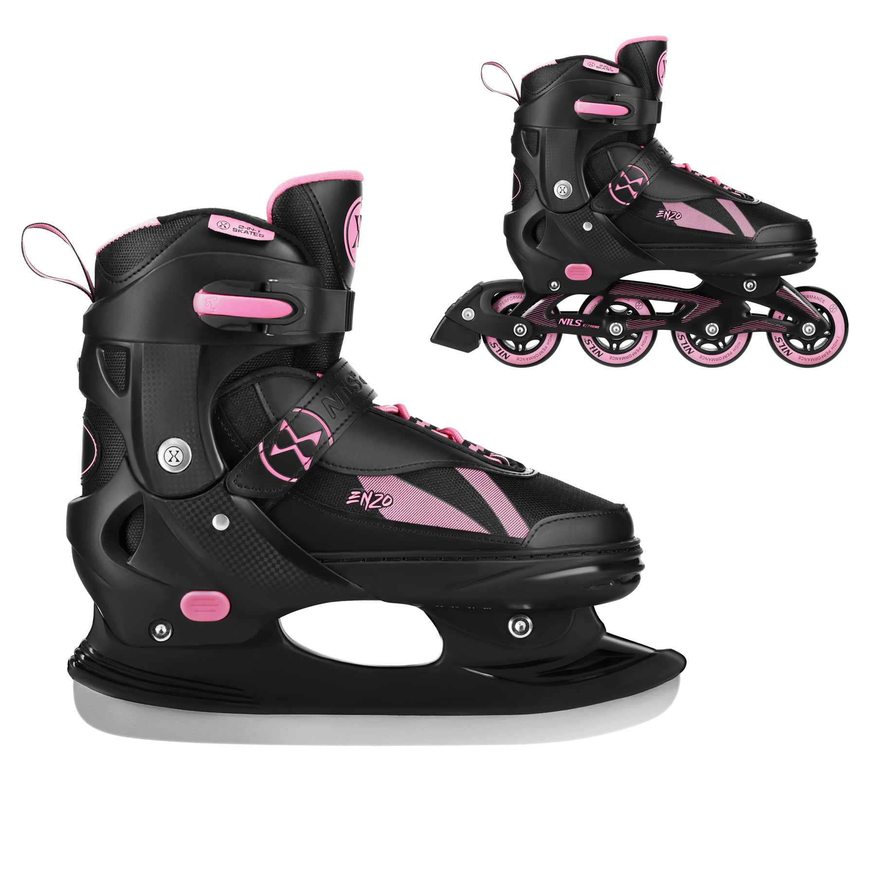 NH382 ŁYŻWOROLKI 2W1 ENZO RÓŻOWE ROZM. XS(28-31) Z WYM. PŁOZĄ HOKEJOWĄ NILS EXTREME