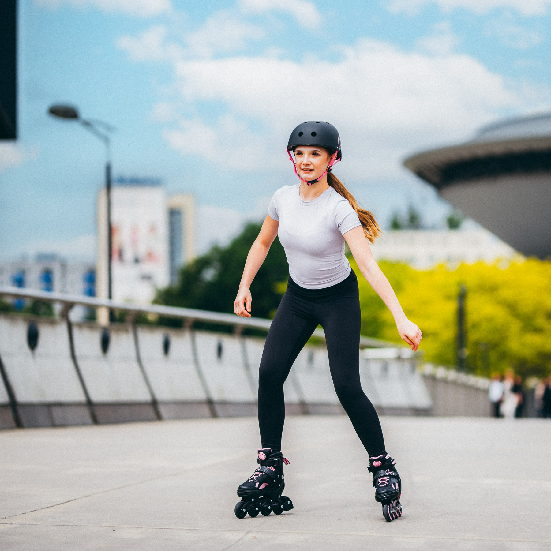 Konstrukcja cholewki oparta jest na wytrzymałym tworzywie PE, które zapewnia optymalne usztywnienie kostki i komfort noszenia. Aluminiowa płoza zastosowana w wersji rolkowej wyróżnia się lekkością oraz odpornością na uszkodzenia mechaniczne. Dzięki temu użytkownik zyskuje stabilność i lepszą kontrolę nad jazdą.