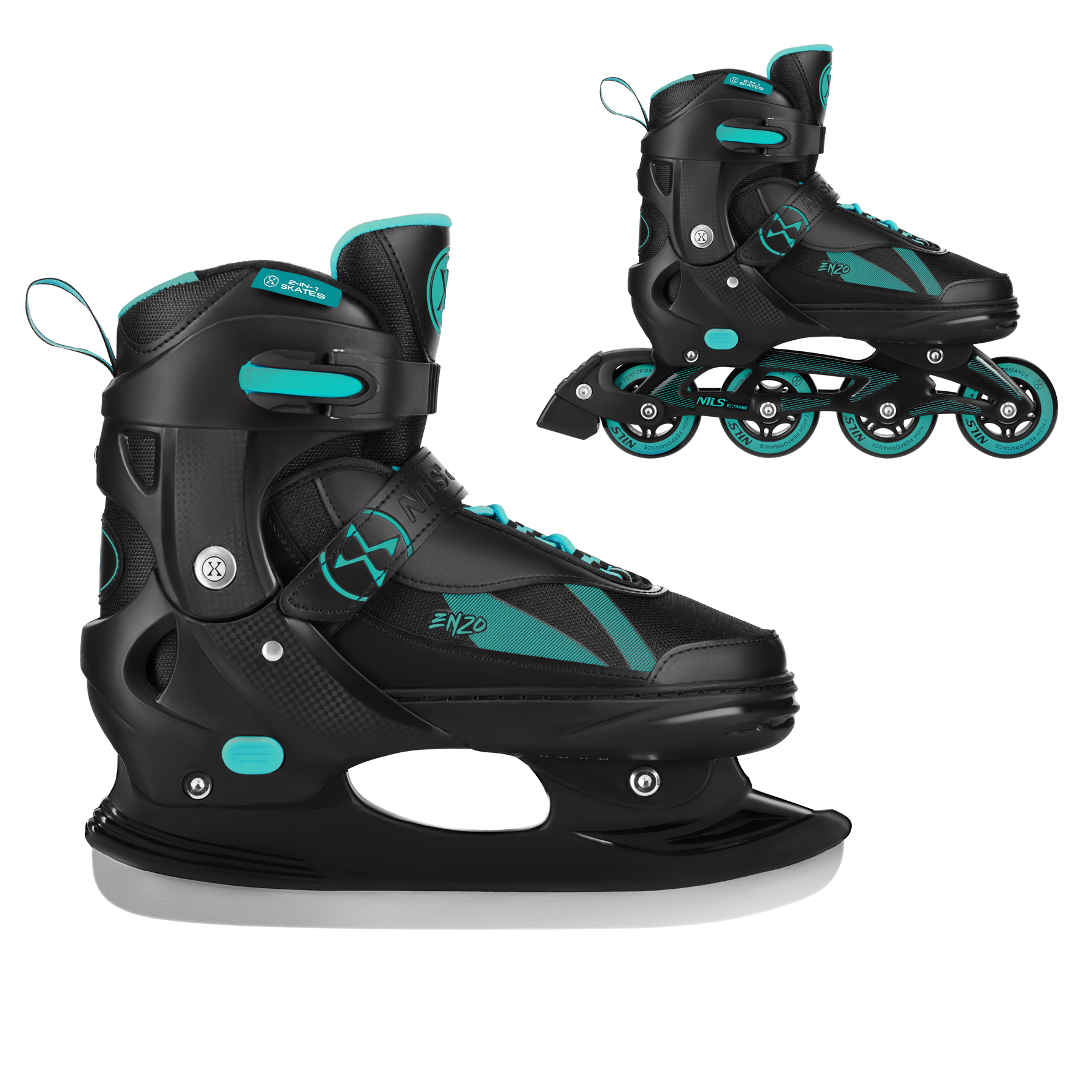 NH382 ŁYŻWOROLKI 2W1 ENZO TURKUSOWE ROZM. XS(28-31) Z WYM. PŁOZĄ HOKEJOWĄ NILS EXTREME