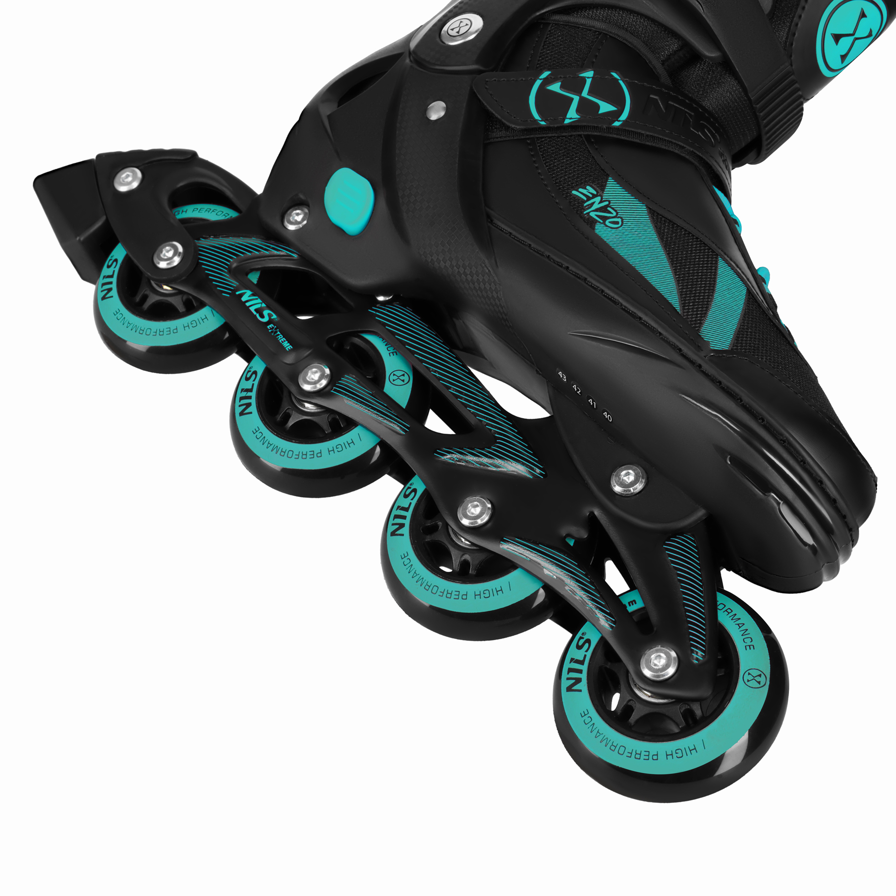 NH382 dostępne są w czterech wariantach rozmiarowych – XS, S, M i L – z możliwością regulacji długości wkładki. To sprawia, że łyżworolki mogą służyć przez dłuższy czas, dostosowując się do rosnącej stopy dziecka. Duży zakres wagowy (od 20 do 100 kg) pozwala na użytkowanie zarówno przez dzieci, młodzież, jak i dorosłych.