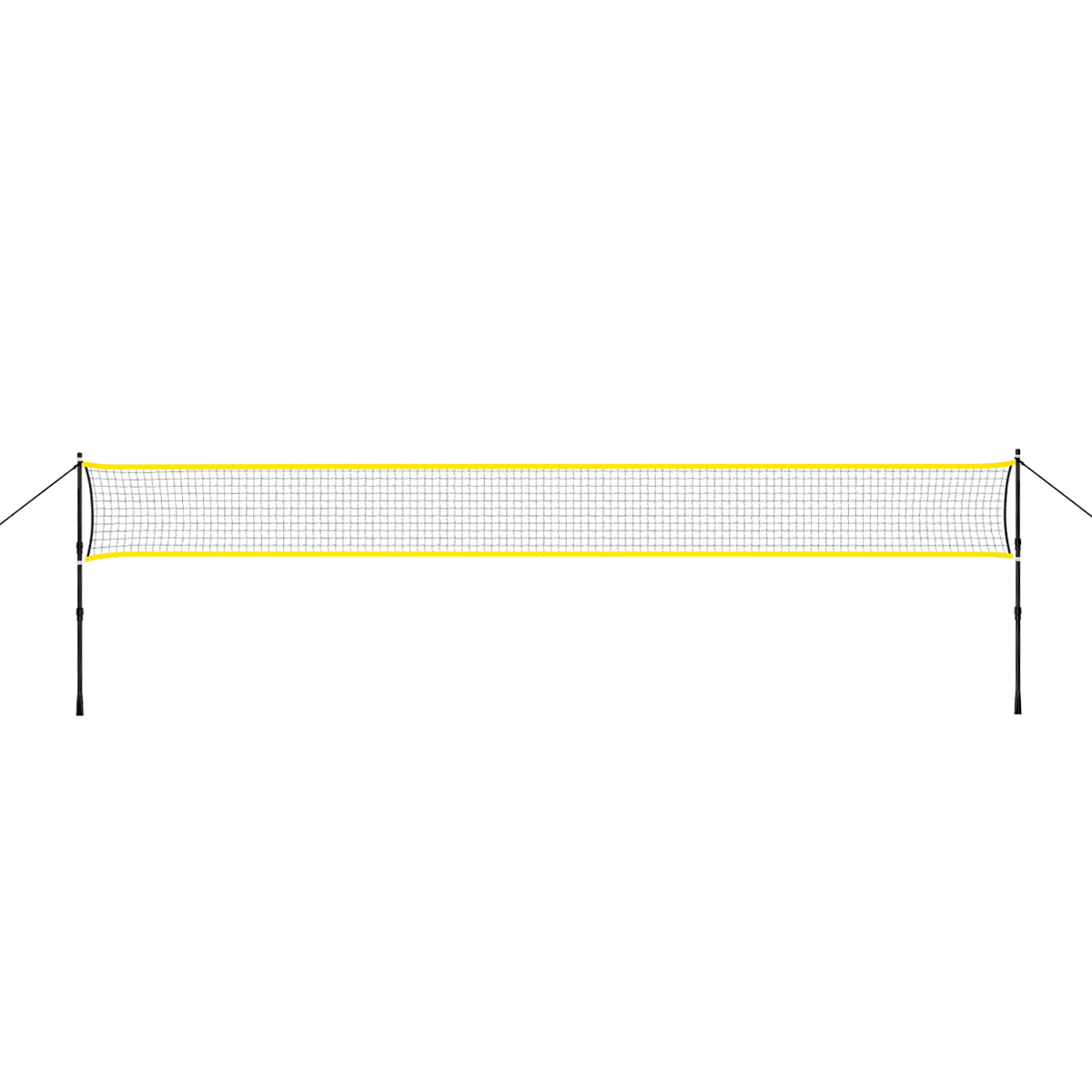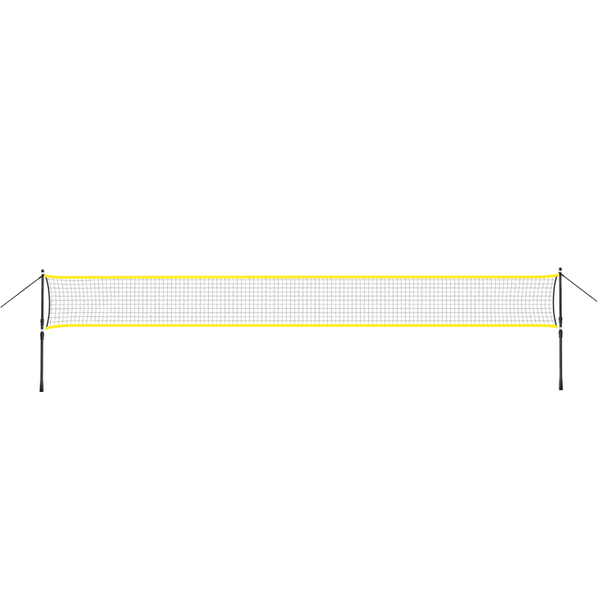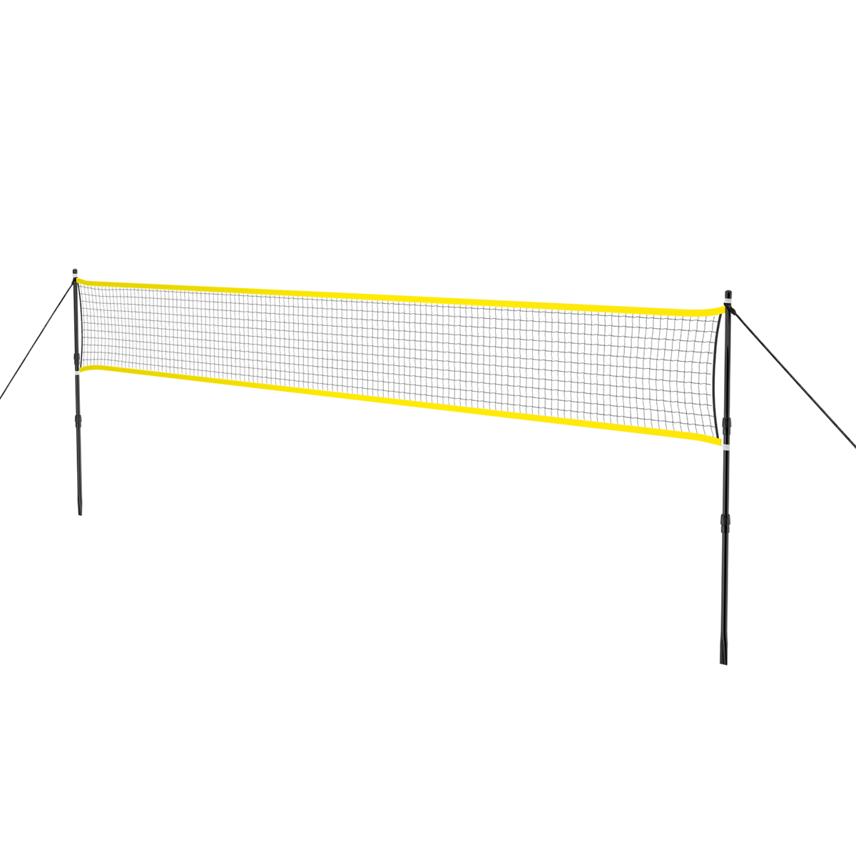 Produkt montuje się wbijając do ziemi słupki, które są stelażem, a do których przywiązujemy siatkę. Słupki są teleskopowe i oferują możliwość, powieszenia siatki na dwóch wysokościach. Zarówno siatka jak i stelaż, są odporne na warunki atmosferyczne. Długość siatki to ponad 6 m, dlatego pozwala na swobodne rozegranie, dwóch meczy jednocześnie.