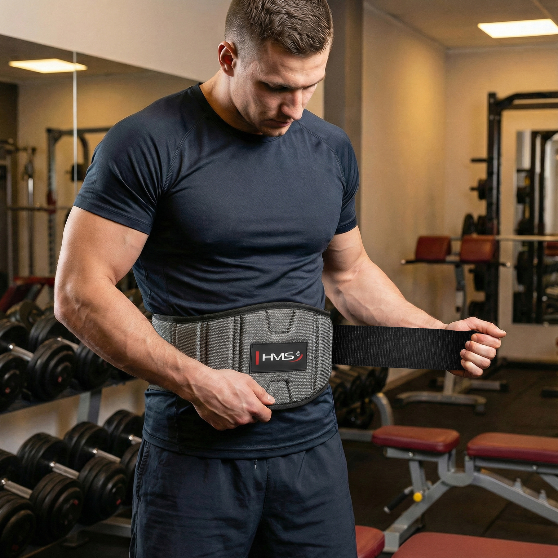 PA3448 HMS to pas kulturystyczny do ćwiczeń. Jego zadaniem jest zabezpieczenie kręgosłupa podczas wykonywania ćwiczeń z użyciem dużych ciężarów. Dzięki płynnej regulacji uścisku doskonale przylega do ciała, co chroni i usztywnia odcinek lędźwiowy kręgosłupa.