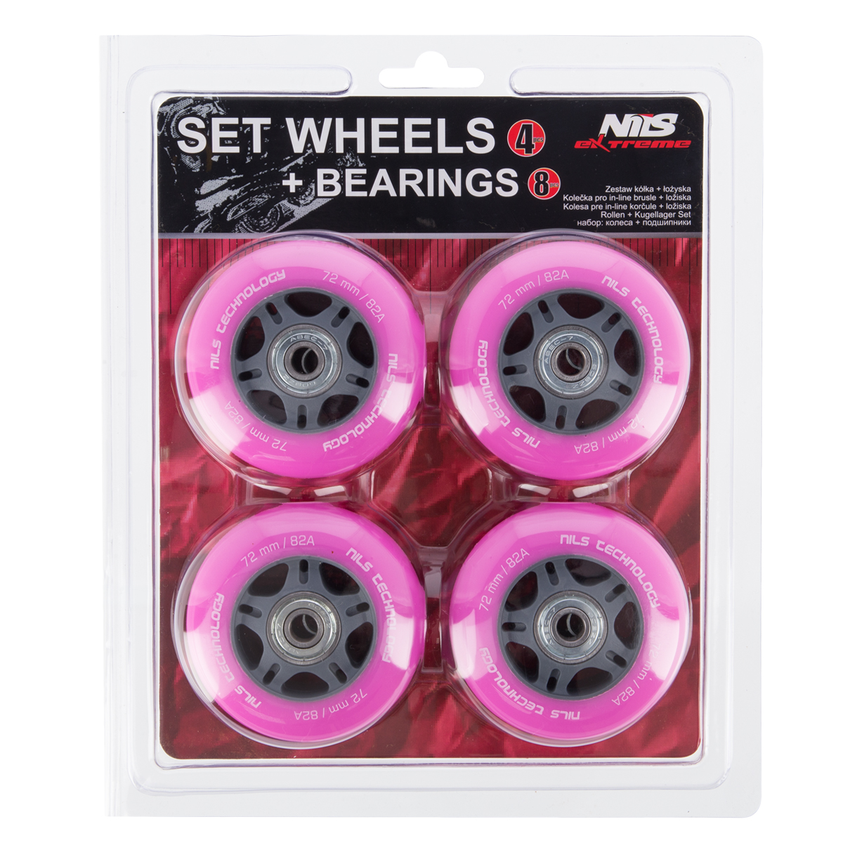 PU 72×24 82A (4szt.) RÓŻOWE + ABEC-7 (8szt.) ZESTAW NILS EXTREME
