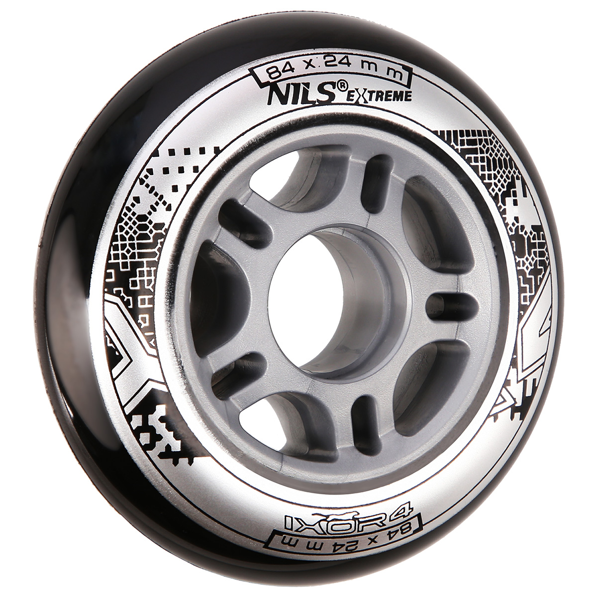 Kółka PU BLACK NILS EXTREME są wykonane z poliuretanu. Najważniejszymi parametrami kółek są twardość oraz średnica. Twardość kółek decyduje zarówno o komforcie jazdy jak i o przyczepności do podłoża. Kółka PU-82A zapewniają dobrą amortyzację oraz doskonałą adaptację do każdej nawierzchni. Średnica kółek ma bezpośredni wpływ na szybkość jazdy. Kółka o większej średnicy umożliwiają osiąganie większych prędkości, jednak nie gwarantują tak dużej manewrowości jak kółka o mniejszej średnicy.