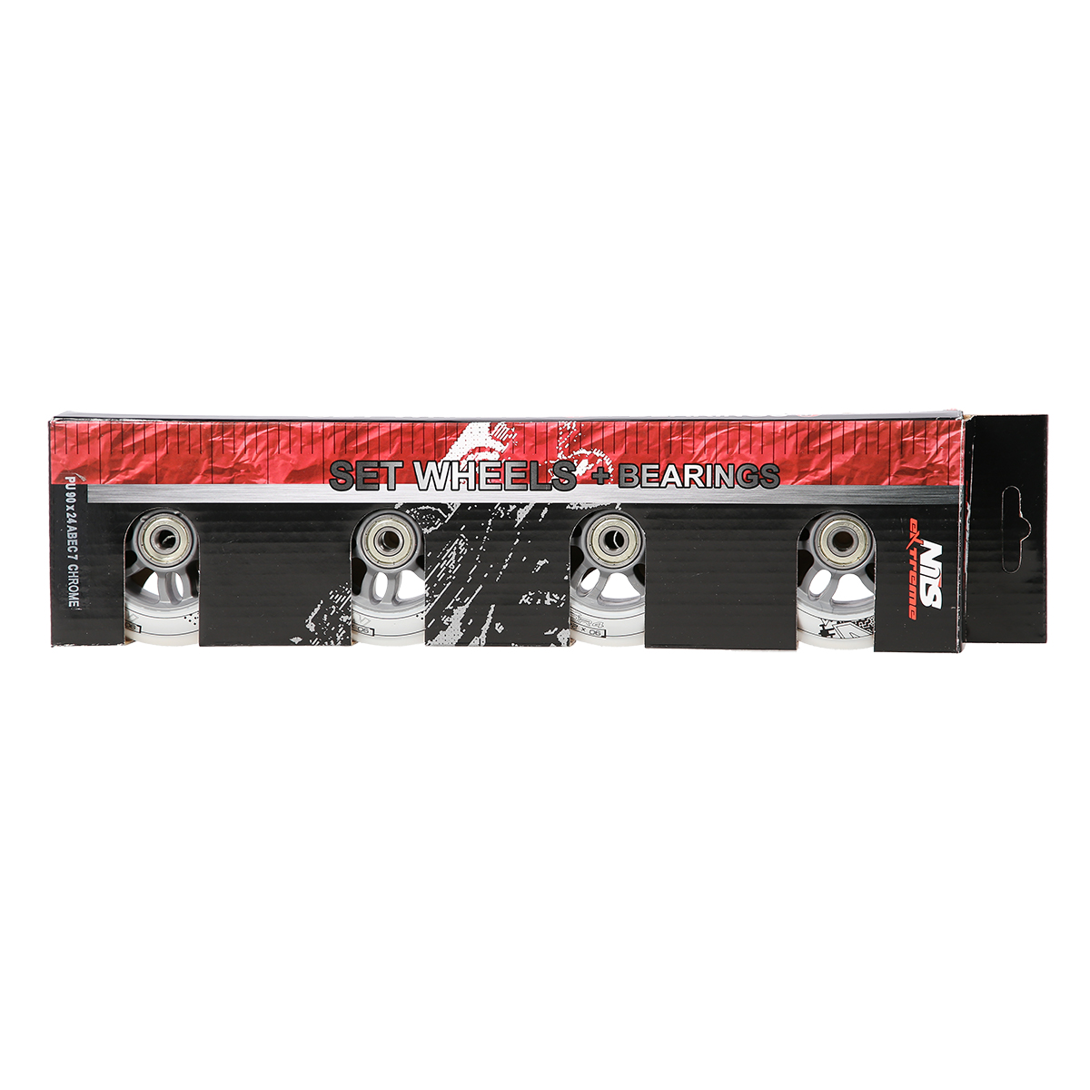 PU 90×24 82A BIAŁE (4 szt.) + ABEC-7 CHROME (8 szt.) ZESTAW NILS EXTREME