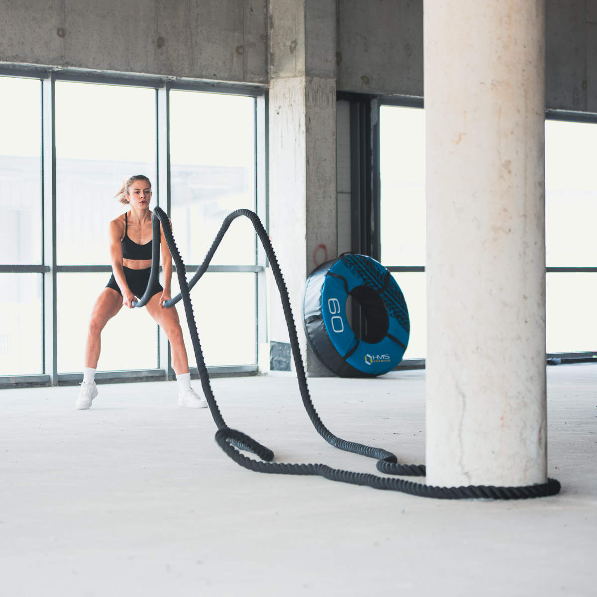 Nowatorską cechą ćwiczeń z liną RP02 HMS, jest połączenie elementów treningu siłowego i wytrzymałościowego. Dzięki niej możemy jednocześnie rozwijać zarówno ręce, plecy i ramiona, jak również brzuch i nogi. Wszechstronność takiego treningu powoduje, że jest on bezkonkurencyjny w walce ze zbędną tkanką tłuszczową.