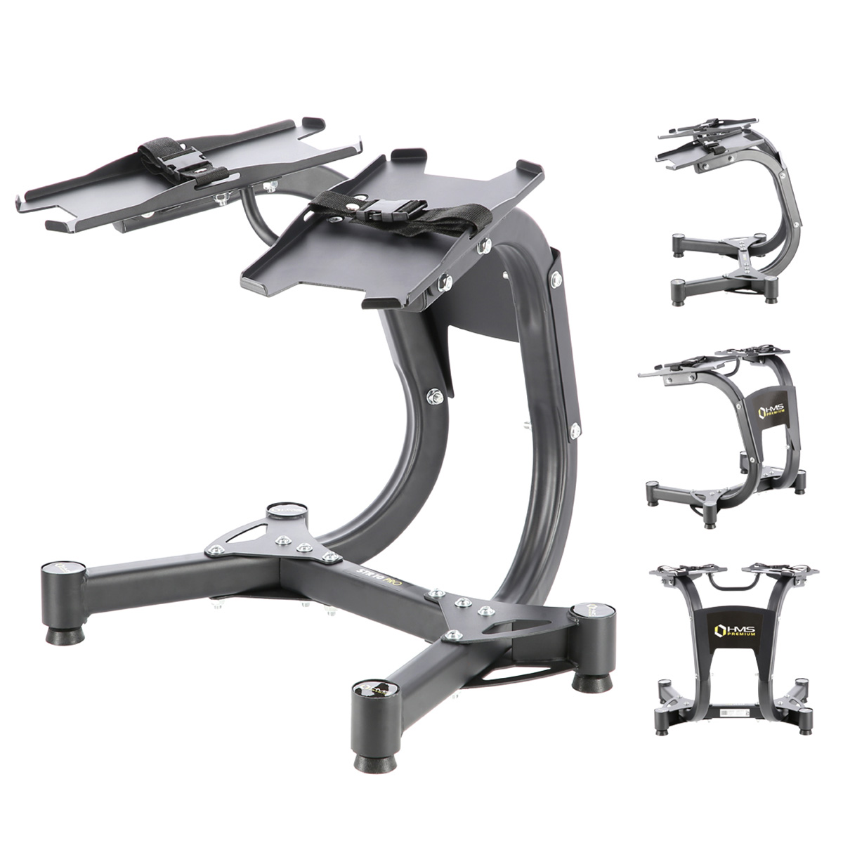 STR10 HMS PREMIUM to stalowy stojak na sztangielki regulowane.
