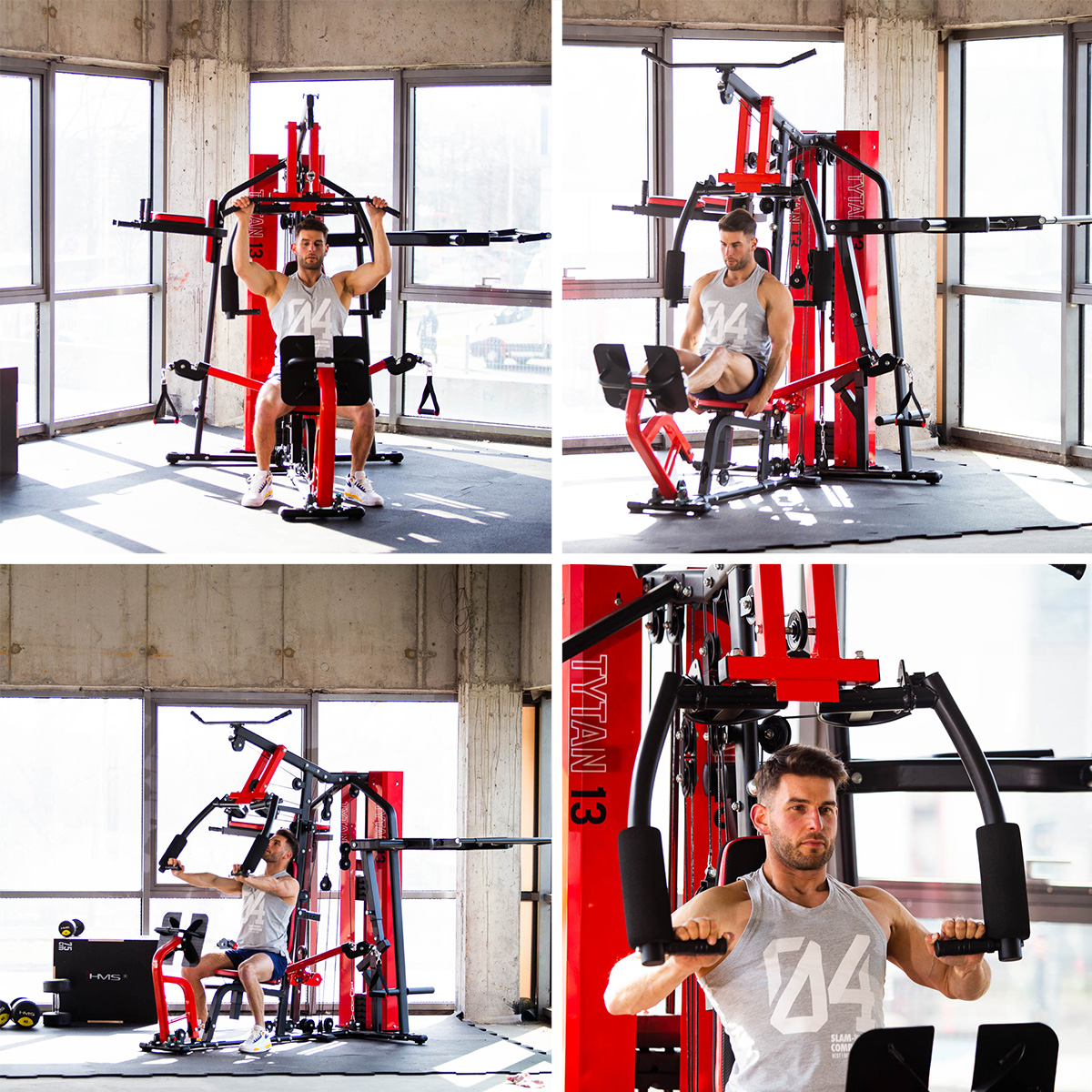 TYTAN 13 jest największym urządzeniem w swojej kategorii oferowanym przez HMS. Ta potężna maszyna oferuje aż trzy niezależne stanowiska treningowe. Wielofunkcyjny atlas do ćwiczeń Tytan 13 oferuje ponad 100 różnych ćwiczeń dla mięśni całego ciała.
