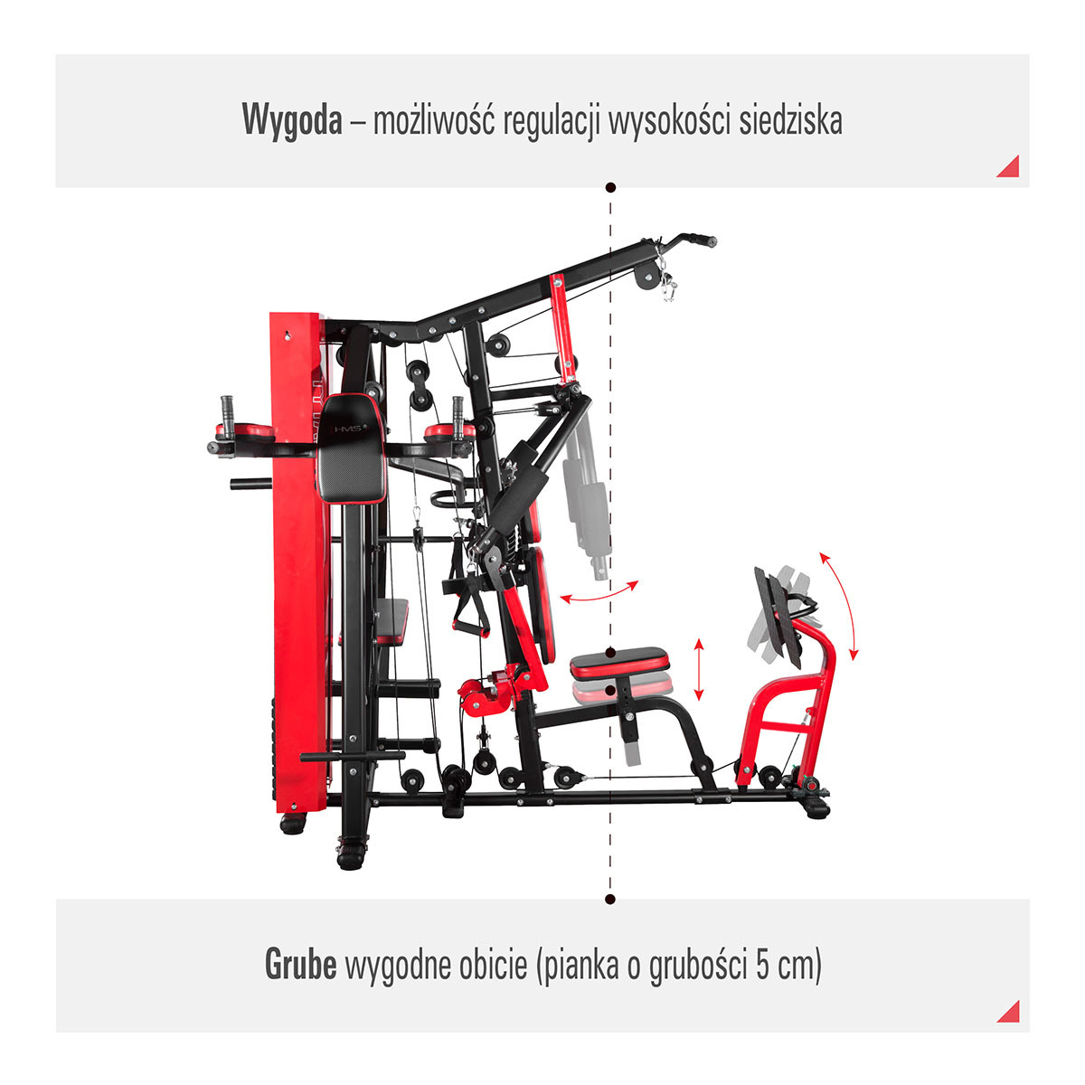 Największy atlas HMS jest kompleksowym urządzeniem. Łatwo go dopasować do użytkownika dzięki prostej w obsłudze regulacji wysokości siedziska. Zmiana obciążenia również następuje błyskawicznie. Dołączone do zestawu akcesoria oraz funkcjonalne karabińczyki pozwalają na sprawne manewrowanie ćwiczeniami.
