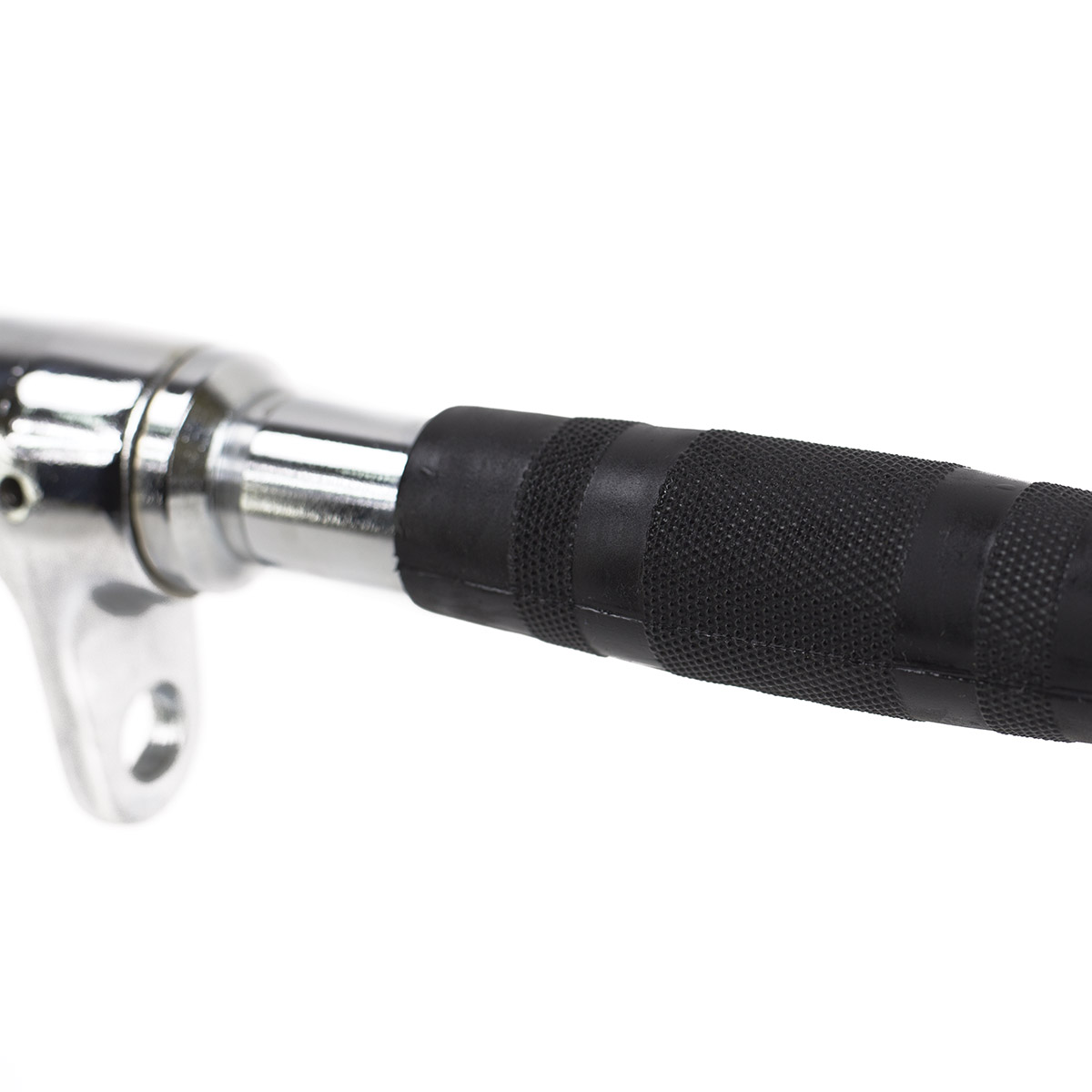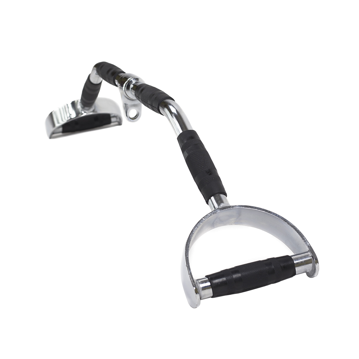 Wykonany jest z wysokiej jakości stali, co daje możliwość treningu ze znacznym obciążeniem. Jego długość oraz rozstaw ogumowanych rękojeści gwarantuje wiele możliwości chwytu – od bardzo wąskiego do bardzo szerokiego. Dzięki temu uchwyt umożliwi przy każdym ćwiczeniu rozwinięcie mięśni na różnych długościach ich przyczepów. W najszerszych miejscach rękojeści ustawione są pod kątem, co przy ćwiczeniu ściągania drążka na wyciągu górnym sprzyja przyciąganiu łokci do tułowia, czyli utrzymaniu lepszej techniki ćwiczenia. W trakcie treningu uchwyt umożliwia zaangażowanie alternatywnych przyczepów mięśniowych w stosunku do ćwiczeń na prostym uchwycie. Sprzyjają temu skrajne rękojeści, ustawione w neutralny chwyt. Dodatkowo są ogumowane, co zapewnia pewny i komfortowy chwyt, bez obaw o wyślizgnięcie się sprzętu z rąk.