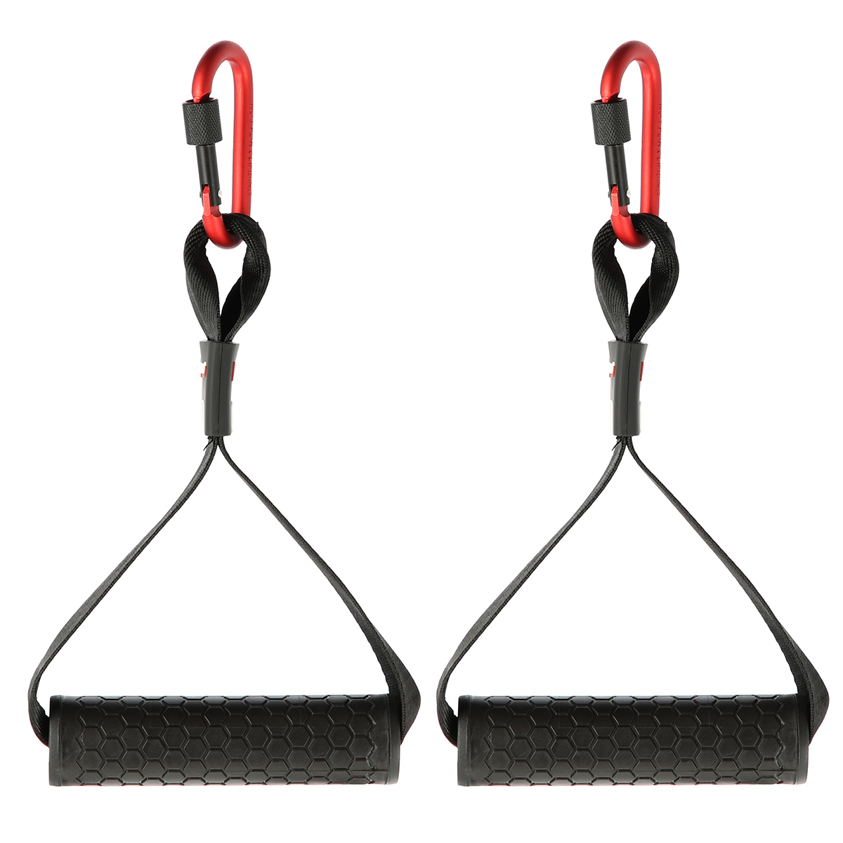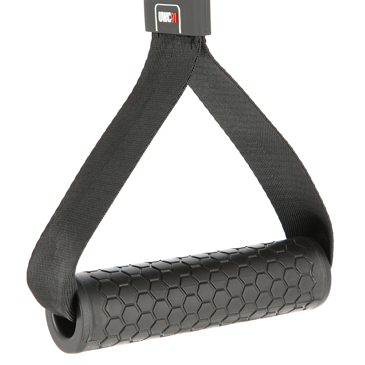 Materiał którym pokryte są rękojeści gwarantuje komfort wykonywania ćwiczeń chroniąc przed odciskami na dłoniach. Dodatkowo idealnie dobrana średnica rękojeści automatycznie sprawia, że mocniej zaciskamy uchwyt co sprawia, że mięśnie przedramienia będą mocno zaangażowane w trakcie ćwiczeń. Wysokiej jakości paski którymi mocujemy uchwyty do wyciągu, umożliwiają trening na znacznym obciążeniu.